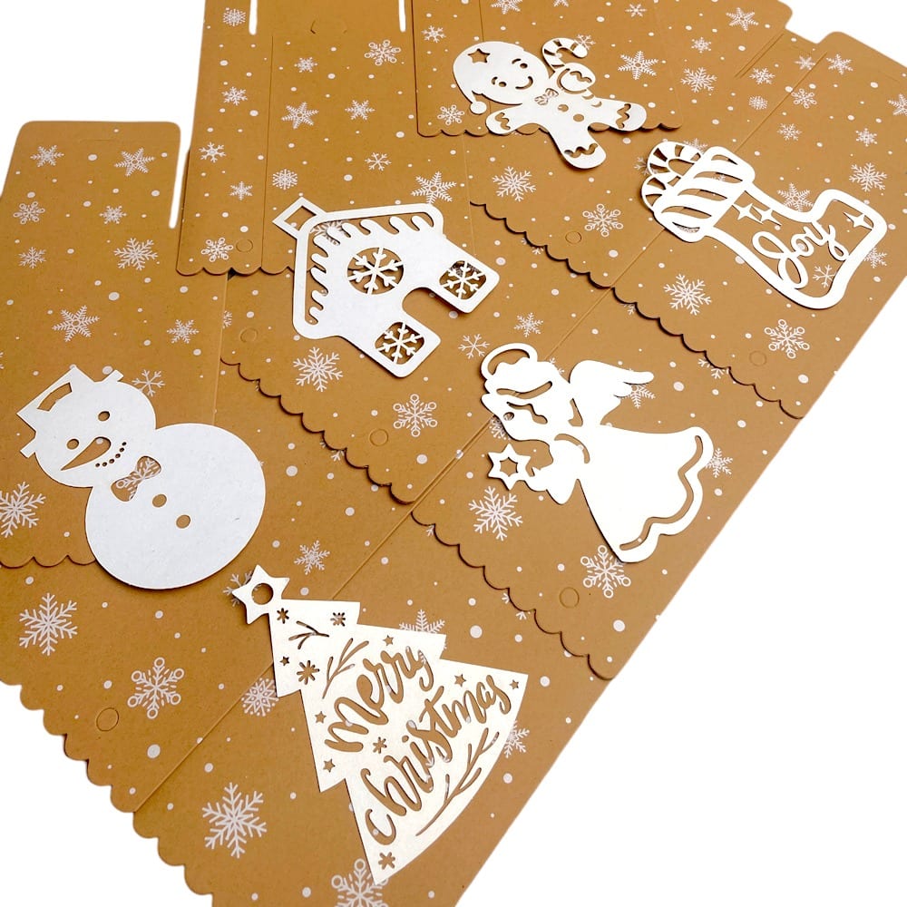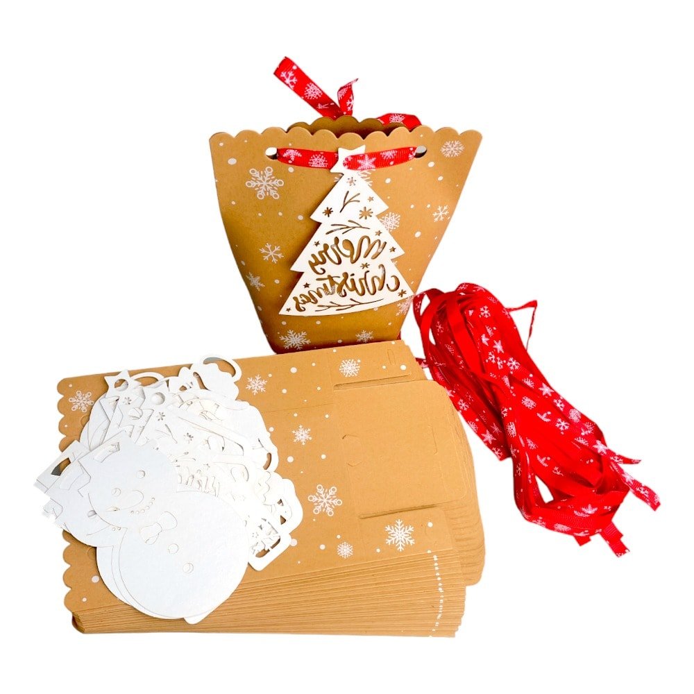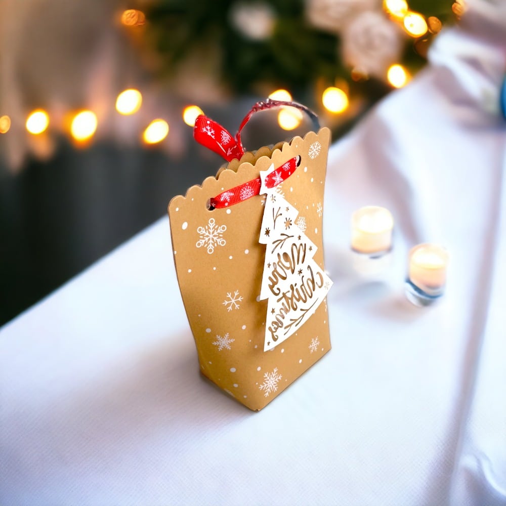 Pungi Crăciun cu panglică roșie și etichetă albă mix 6 modele (set 24 buc) 9x6.5x18 aduc bucurie și eleganță în sărbătoarea ta de Crăciun.