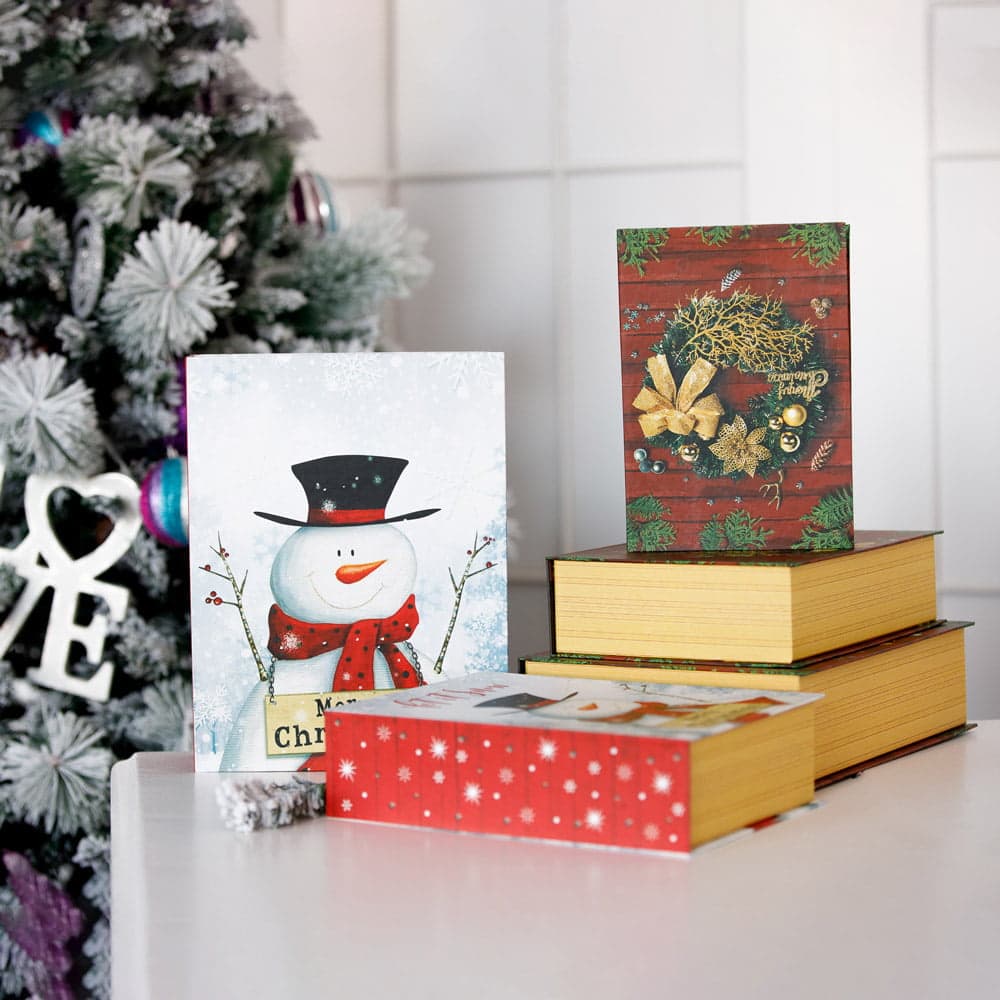 Set 3 cutii carte de Crăciun – model om de zăpada