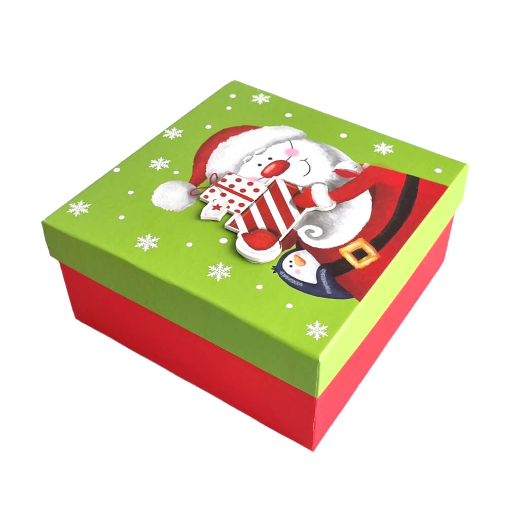 Set 3 cutii dreptunghiulare 3D medii Crăciun - model vine Moșu
