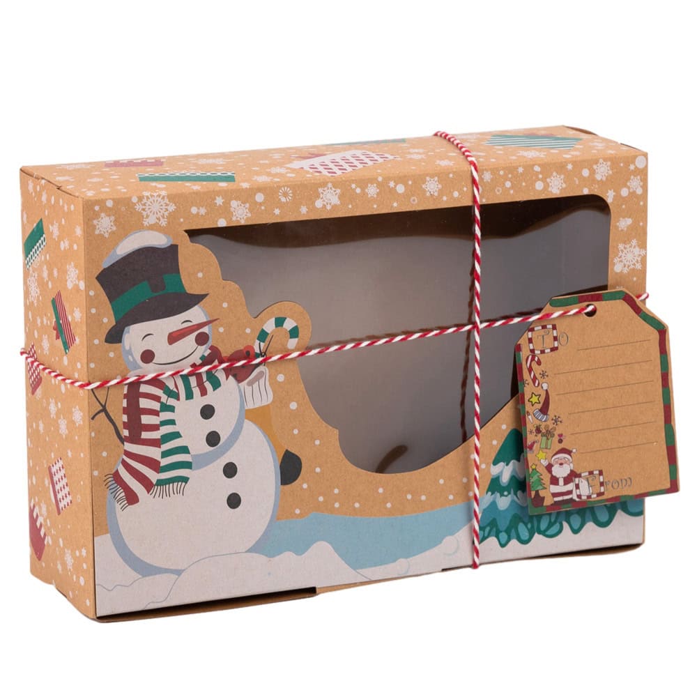 Set 6 cutii Crăciun 3 modele cu fereastră etichetă si sfoară - kraft acest set festiv de cutii din hârtie kraft este perfect pentru a adăuga o notă magică sărbătorilor de iarnă. Cu design-uri adorabile de Crăciun, aceste cutii sunt ideale pentru ambalarea cadourilor mici, a dulciurilor sau a altor surprize pentru cei dragi.