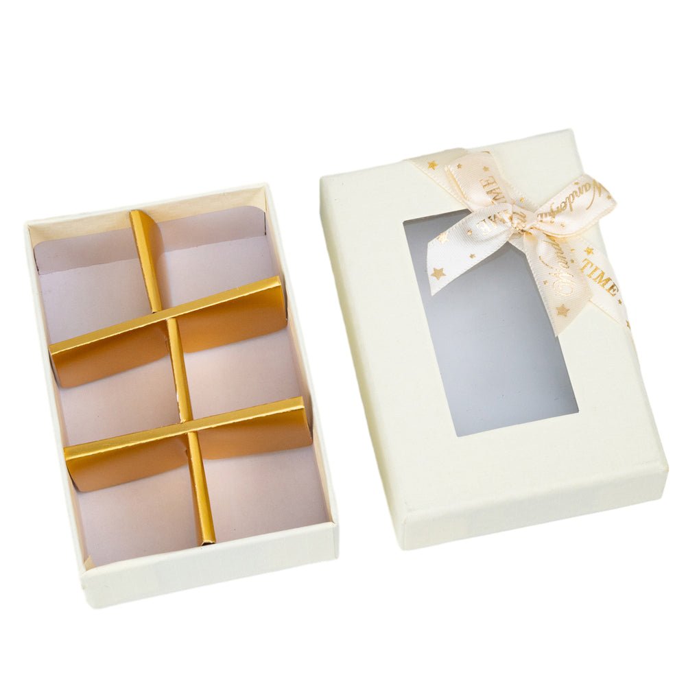 Cutie cadou din hârtie cu 6 compartimente, fereastră și panglică - alb (set 6 buc) - 9x6x4cm