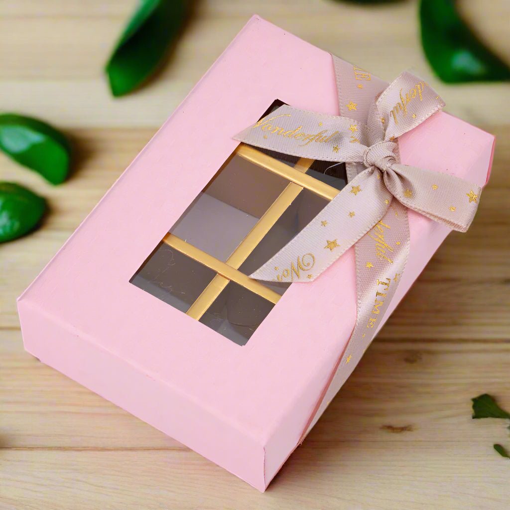 Cutie cadou din hârtie cu 6 compartimente, fereastră și panglică - roz (set 6 buc) - 9x6x4cm