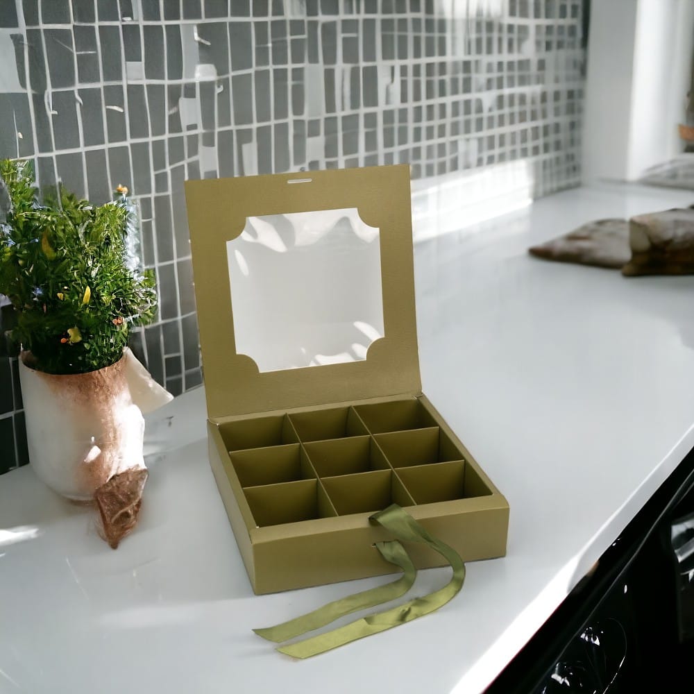 Cutie cu fereastră și panglică 9 compartimente - verde (set 5 buc), oferă organizare eficientă și prezentare elegantă.