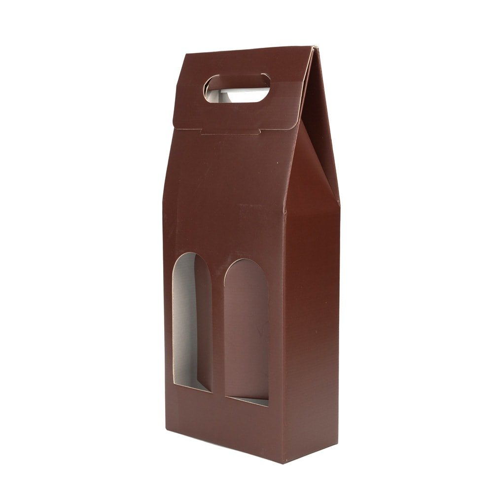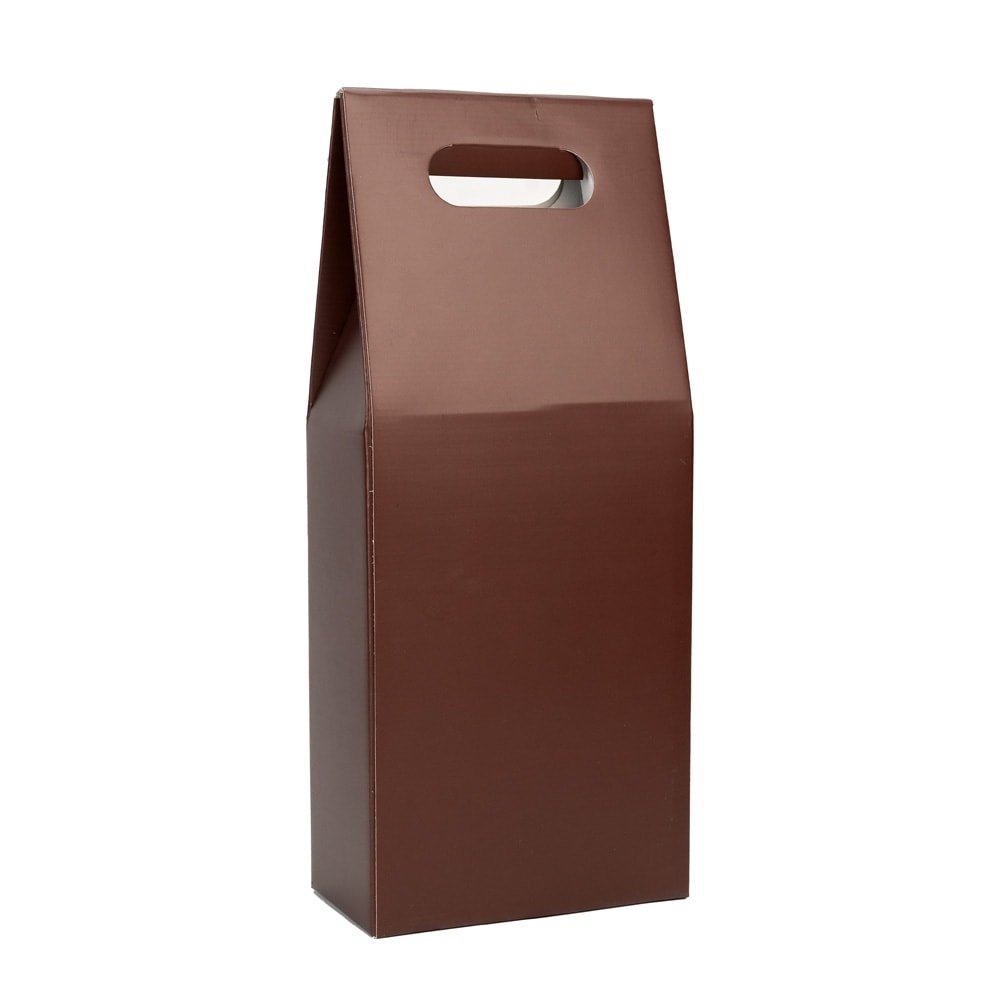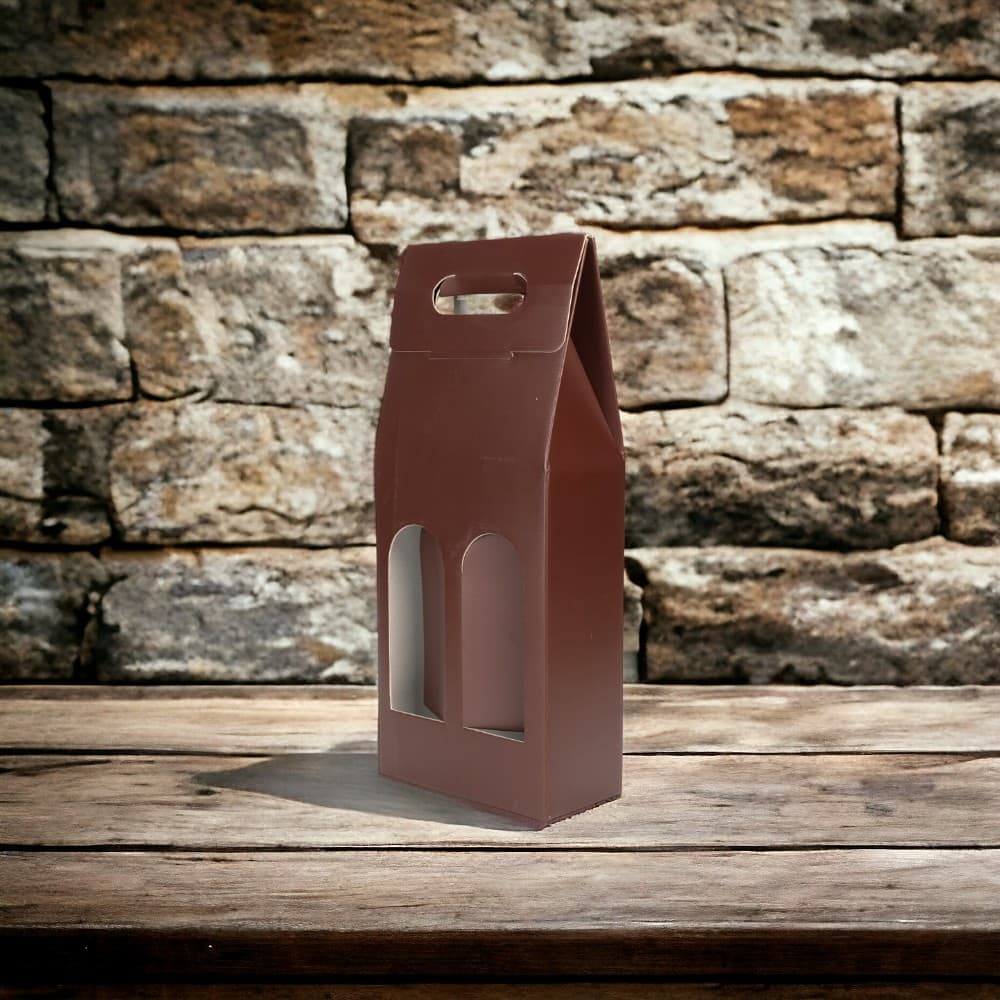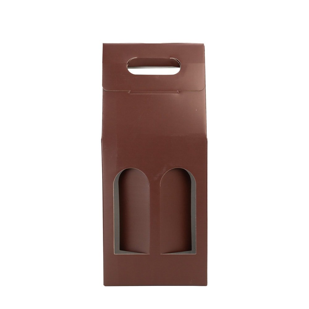 Cutie cu mâner pentru 2 sticle - maro (set 10 buc)