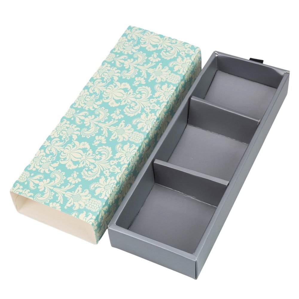 Cutie cu sertar model regal - verde (set 10 buc), ideală pentru depozitarea și prezentarea obiectelor mici sau cadourilor într-un mod elegant și practic. Designul său cu motive clasice, combinat cu un sistem de sertar compartimentat, oferă o soluție de ambalare versatilă și stilată.