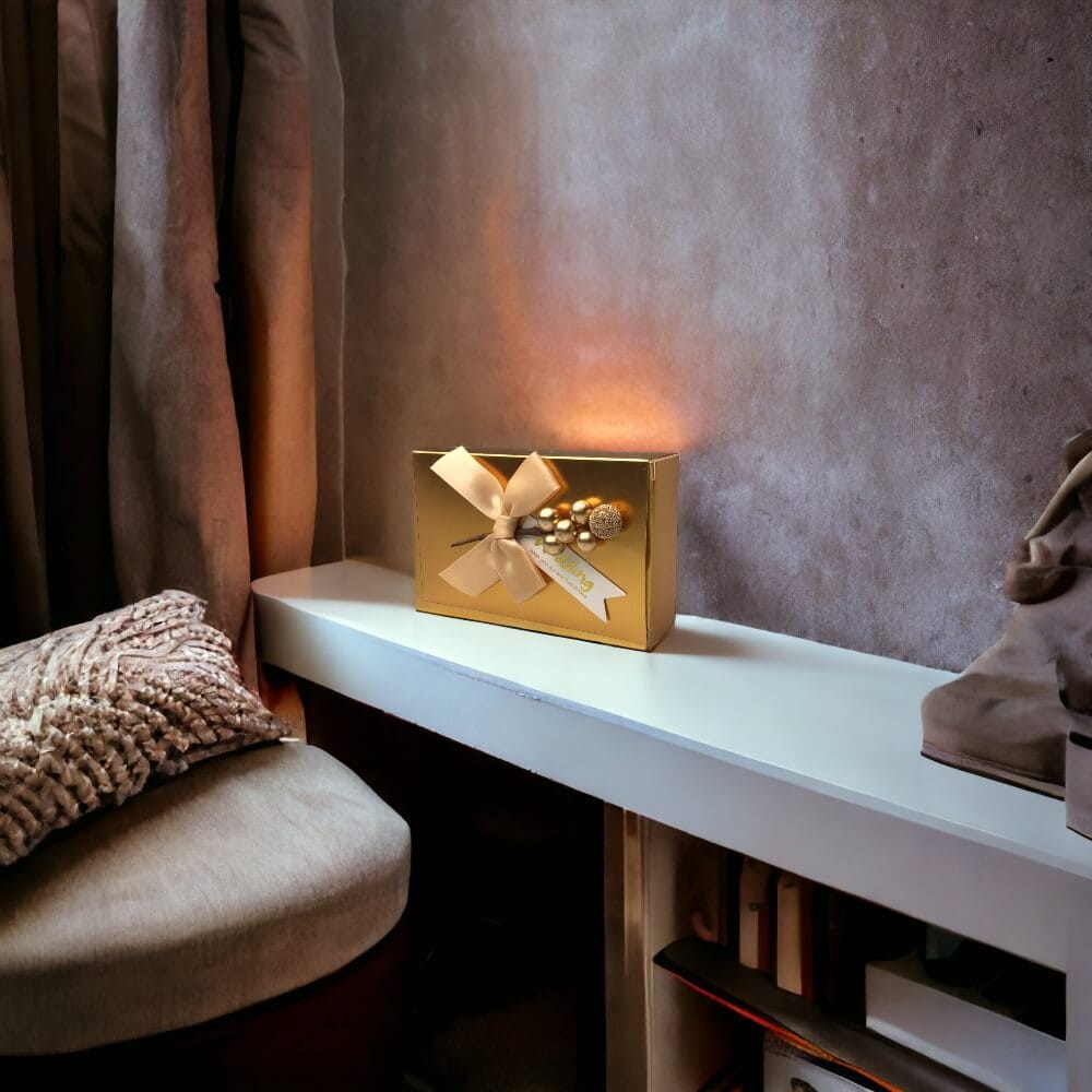 • Dimensiune Ideală pentru Mici Cadouri (13x8x3.5cm): Este perfectă pentru a ambala elegant bomboane fine de ciocolată (ex: 2-4 praline), o bijuterie delicată sau alte mărturii prețioase.