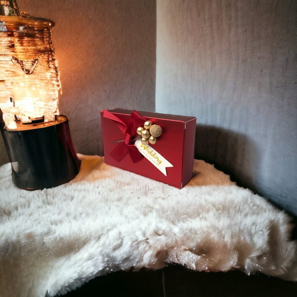 Cutie din hârtie cu fundă și floare 13x8x3,5cm - roșu
