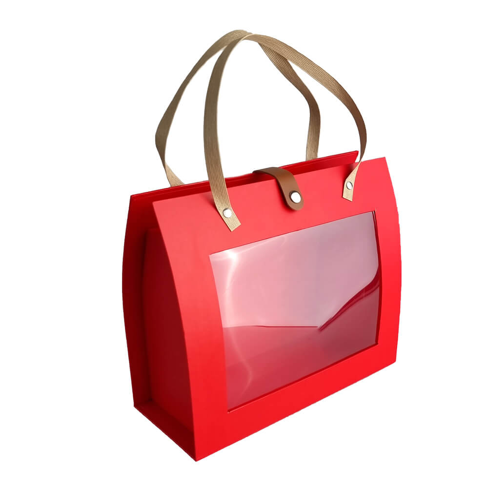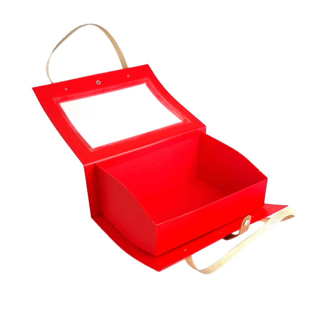Elegantă și practică, această cutie roșie cu mânere și fereastră transparentă adaugă un plus de rafinament oricărui cadou sau produs ambalat. Perfectă pentru a atrage privirea și a păstra conținutul în siguranță.