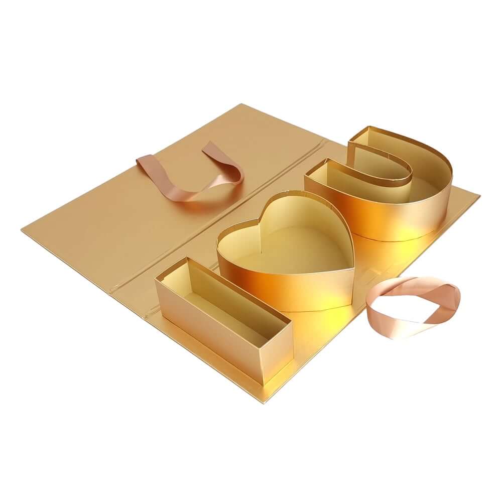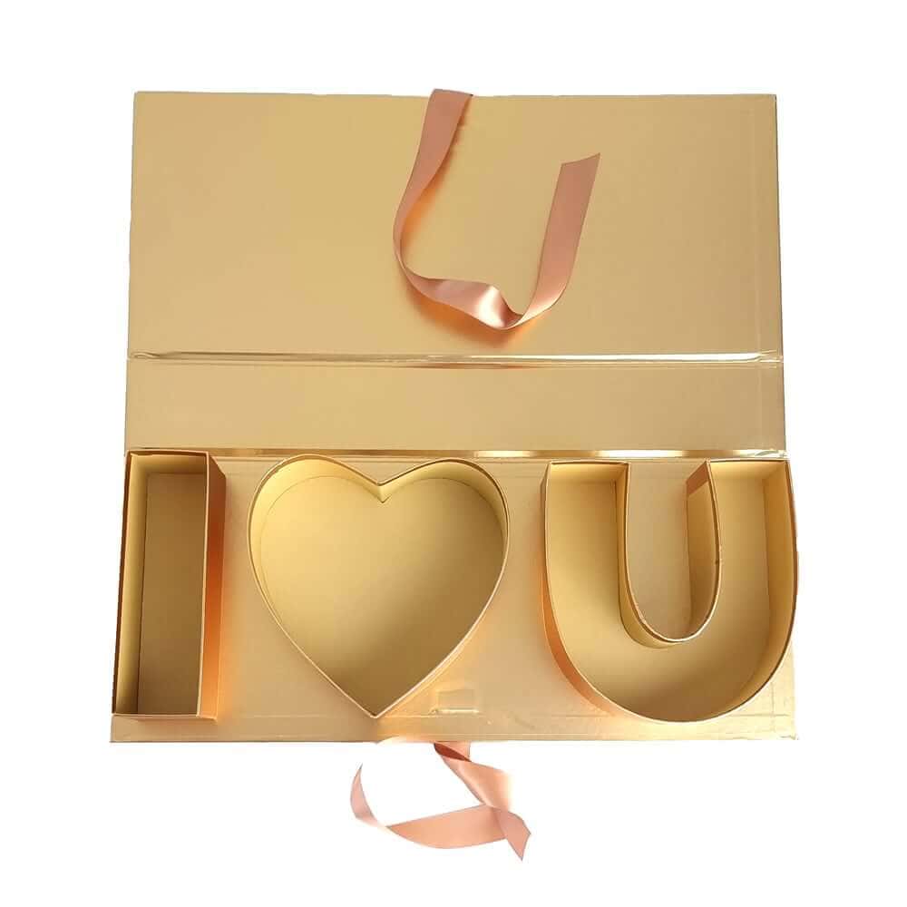 Cutie dreptunghiulara model trandafir I love you - auriu