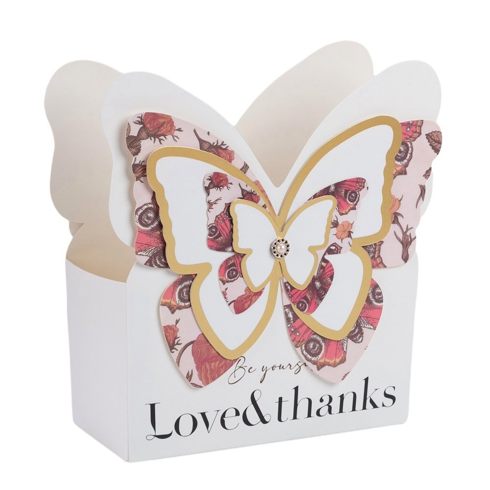 Cutie dreptunghiulară pentru flori model fluture - roșu este alegerea perfectă pentru a oferi un buchet de flori într-un mod cu totul special. Cu un design sofisticat, îmbinând nuanțe pastelate și detalii aurii, aceasta cutie va adăuga o notă de rafinament oricărui aranjament floral.