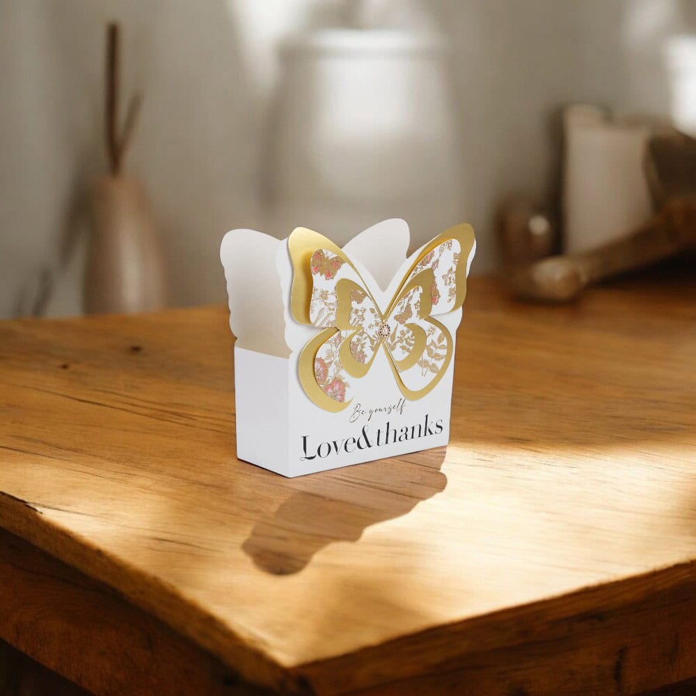 Cutie dreptunghiulară pentru flori model fluture - auriu (set 10 buc)