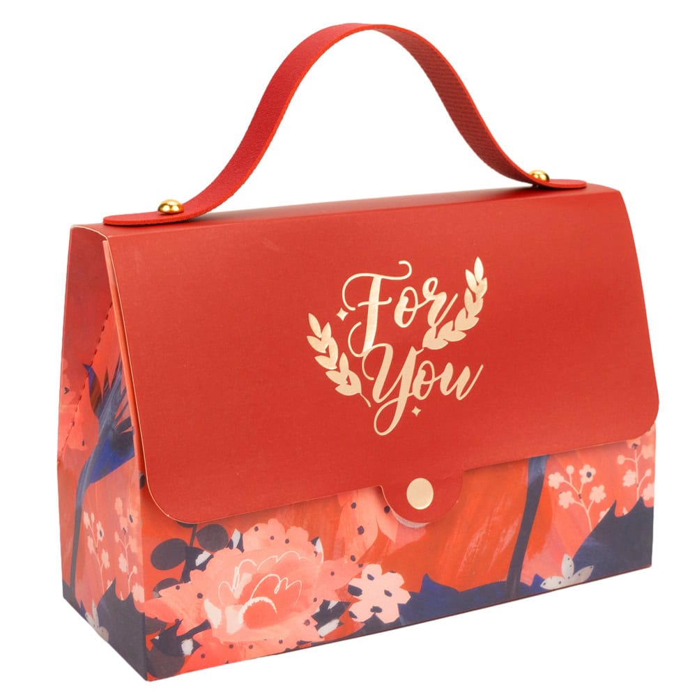 Cutie gentuță model floral cu mâner și mesaj Love You - roșu - O cutie cadou elegantă și versatilă, perfectă pentru a oferi un dar special celor dragi. Cu designul său floral și mesajul afectuos, această cutie adaugă o notă de romantism și eleganță oricărui cadou.