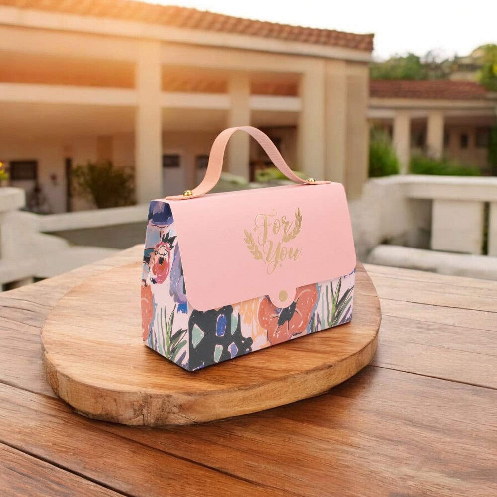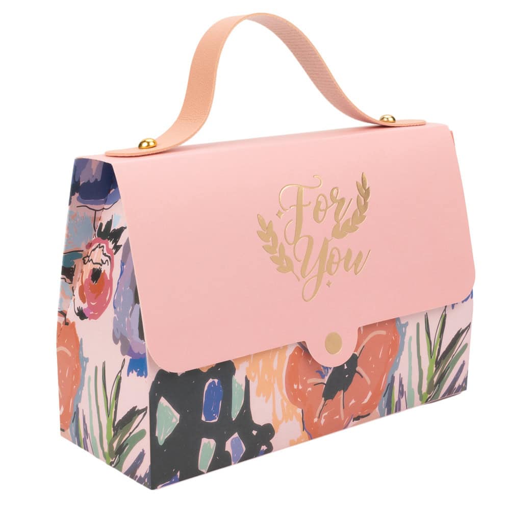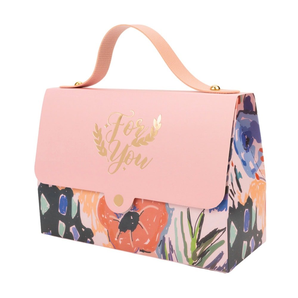 Cutie gentuță model floral cu mâner și mesaj Love You - roz - O cutie cadou elegantă și versatilă, perfectă pentru a oferi un dar special celor dragi. Cu designul său floral și mesajul afectuos, această cutie adaugă o notă de romantism și eleganță oricărui cadou.