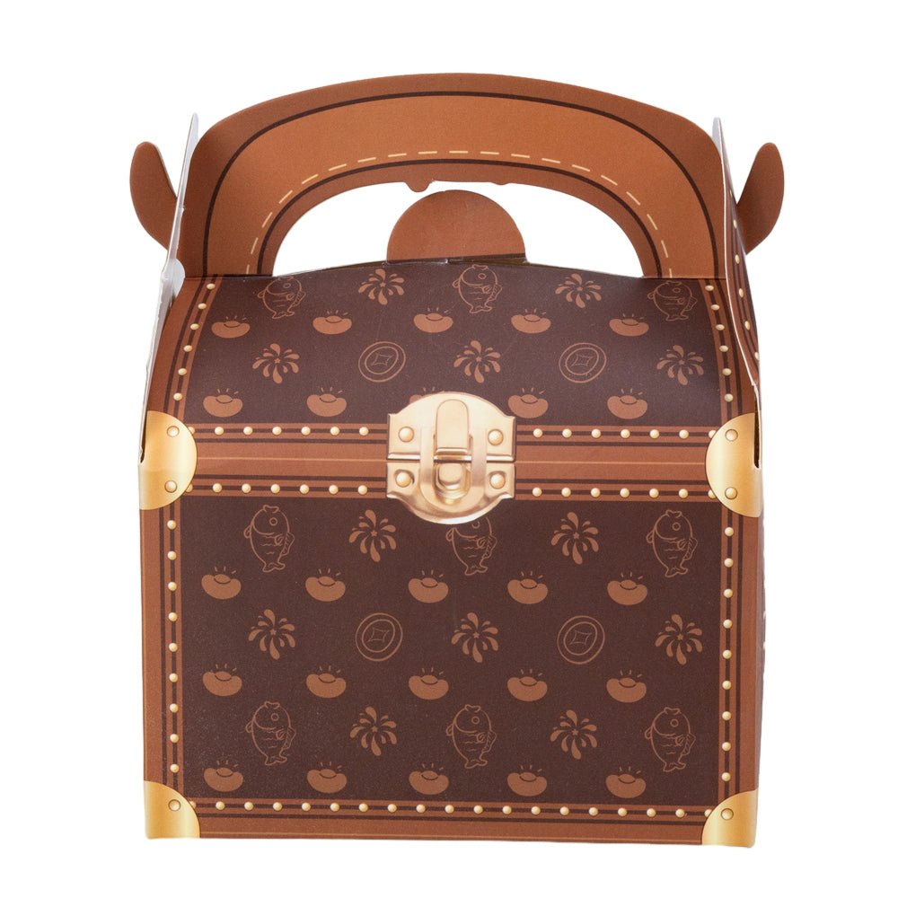 O cutie de hârtie premium, cu un design elegant, inspirat de cuferele de călătorie, ce se remarcă prin aspectul său de "mini-geantă" și accentele aurii. Perfectă pentru a ambala cu stil mici surprize, cadouri corporate sau produse artizanale.