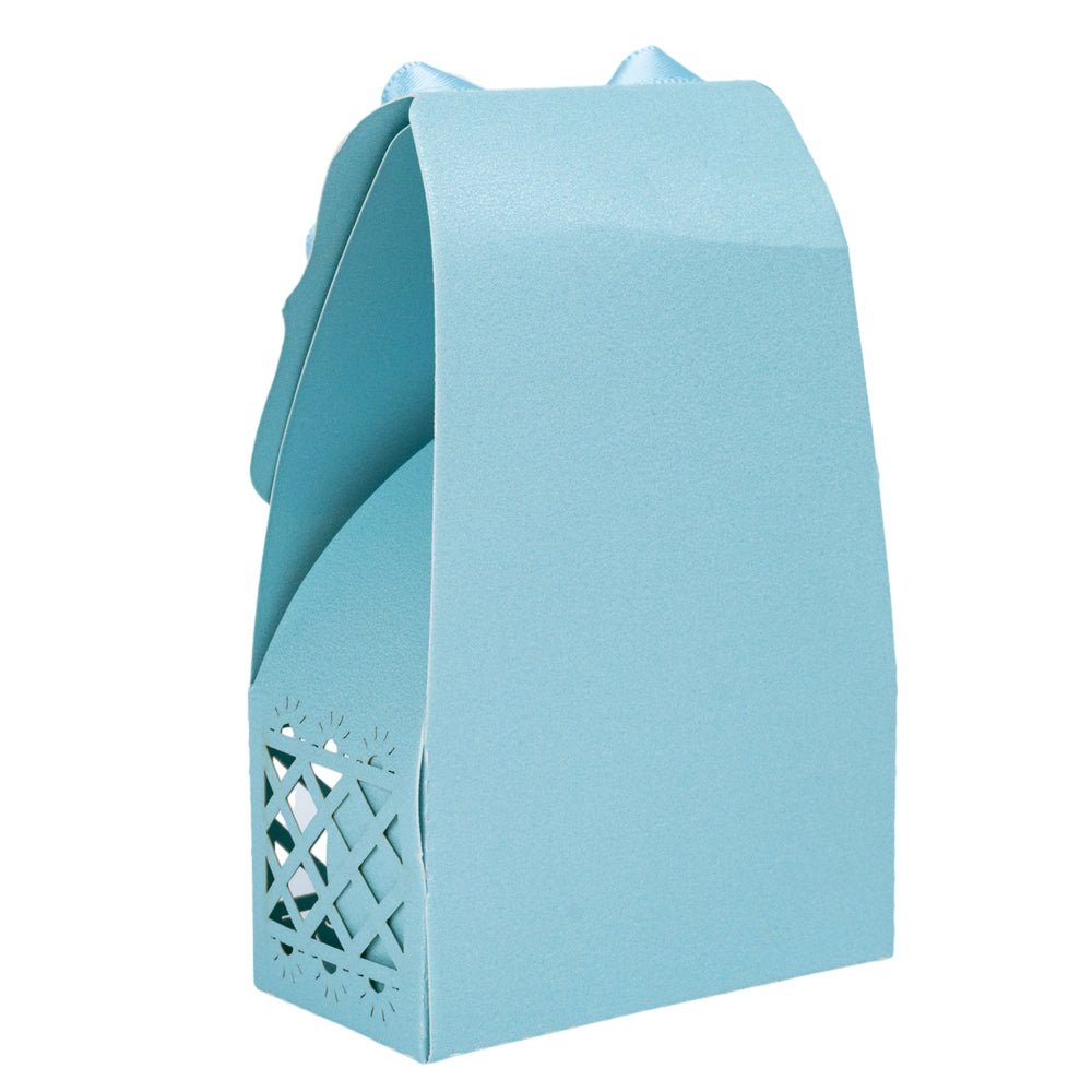 Cutie hârtie model Baby Shower cu panglică - albastru (set 12 buc) - 6.4x3.5x10.2cm