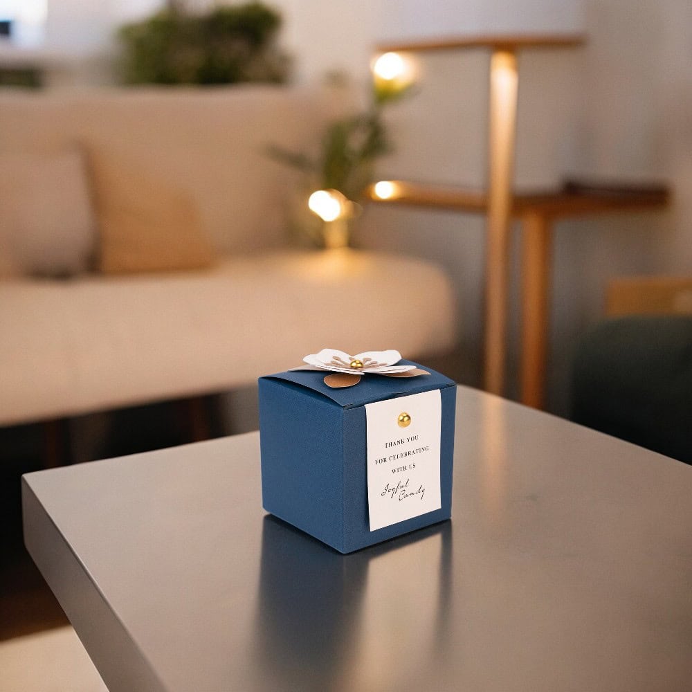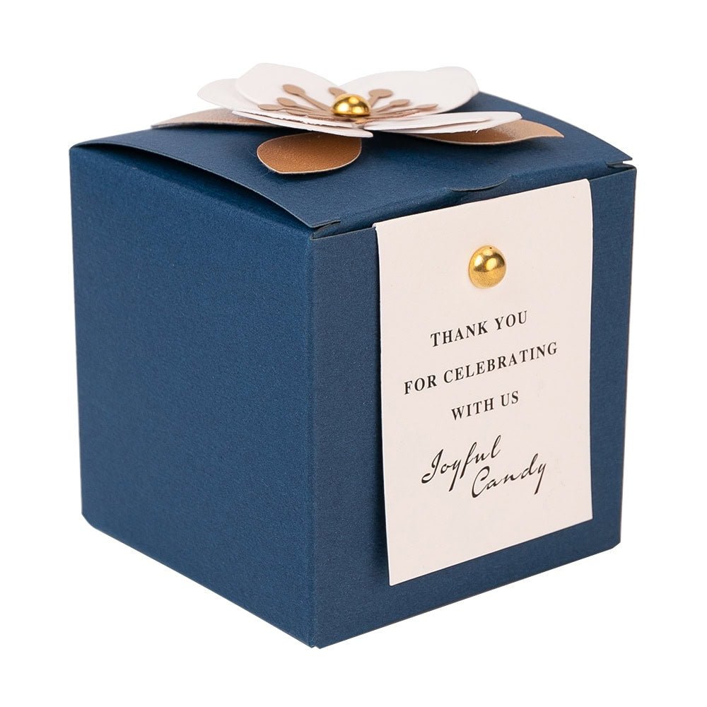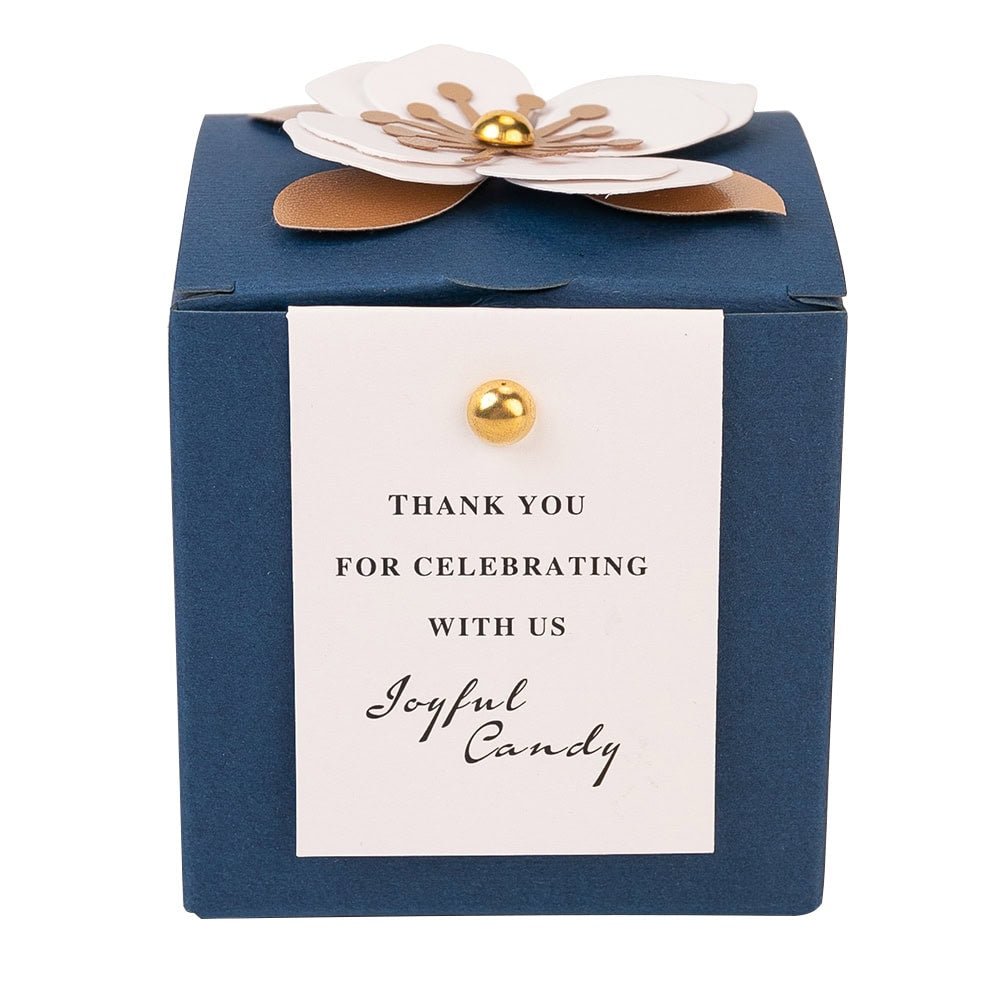 Cutie mică cu floare 3D și mesaj - albastru-alb (set 10 buc), îmbină eleganța cu recunoștința într-un design deosebit. Floarea 3D și mesajul de mulțumire, oferă o modalitate unică și rafinată de a exprima aprecierea.