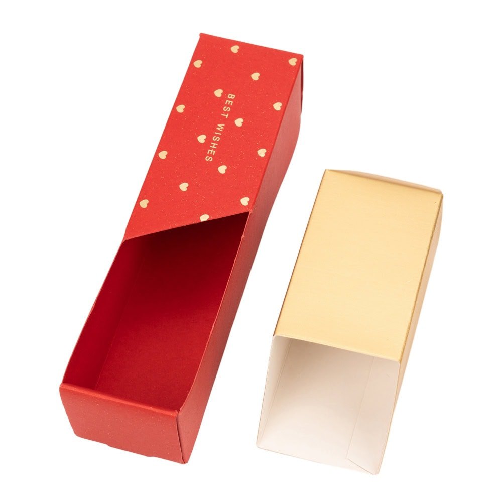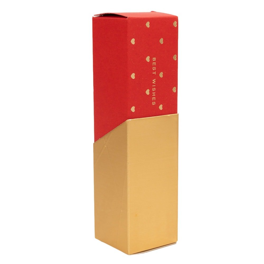 Cutie mică dreptunghiulară în 2 culori cu mesaj Best Wishes - roșu/auriu, prezintă un design elegant în două culori - roșu și auriu - perfect pentru cadouri speciale. Partea superioară roșie este decorată cu inimioare aurii și mesajul "Best Wishes", în timp ce baza aurie oferă un contrast sofisticat. Forma alungită și închiderea practică o fac ideală pentru o varietate de daruri mici și delicate.