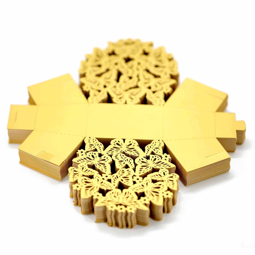 Cutiuță cu fundă model fluturași 6,3x4cm - auriu (set 50 buc)