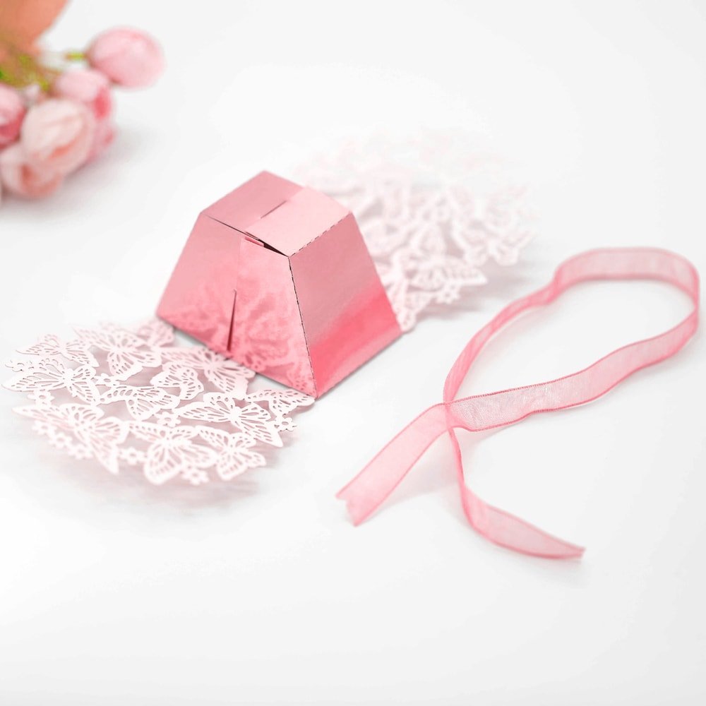 Cutiuță cu fundă model fluturași 6,3x4cm - roz este un accesoriu elegant și practic, potrivit pentru diferite evenimente și utilizări.