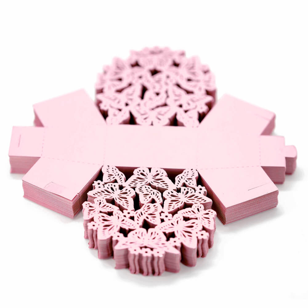Cutiuță cu fundă model fluturași 6,3x4cm - roz (set 50 buc)