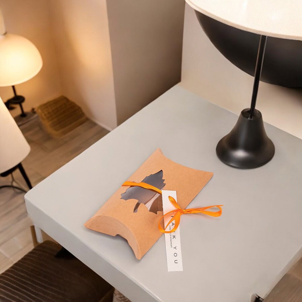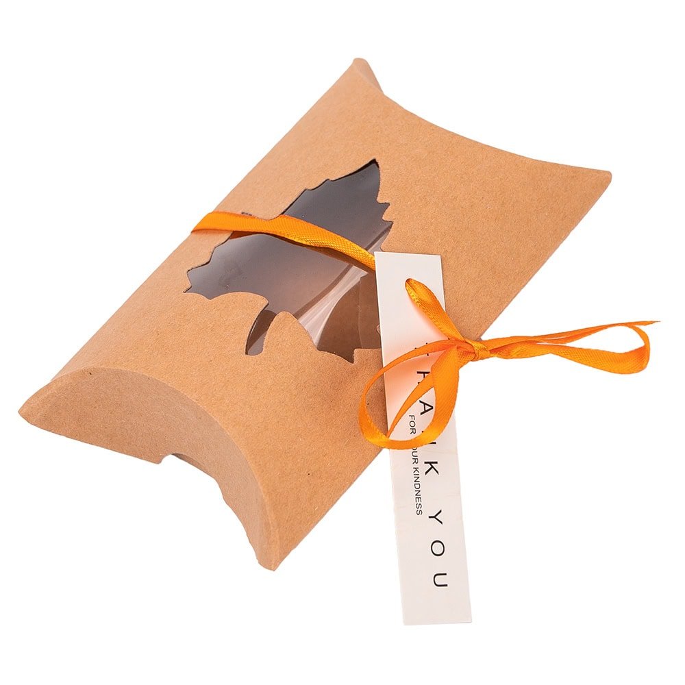 Cutie stil pernă cu fereastră în formă de frunză - kraft (set 50 buc)