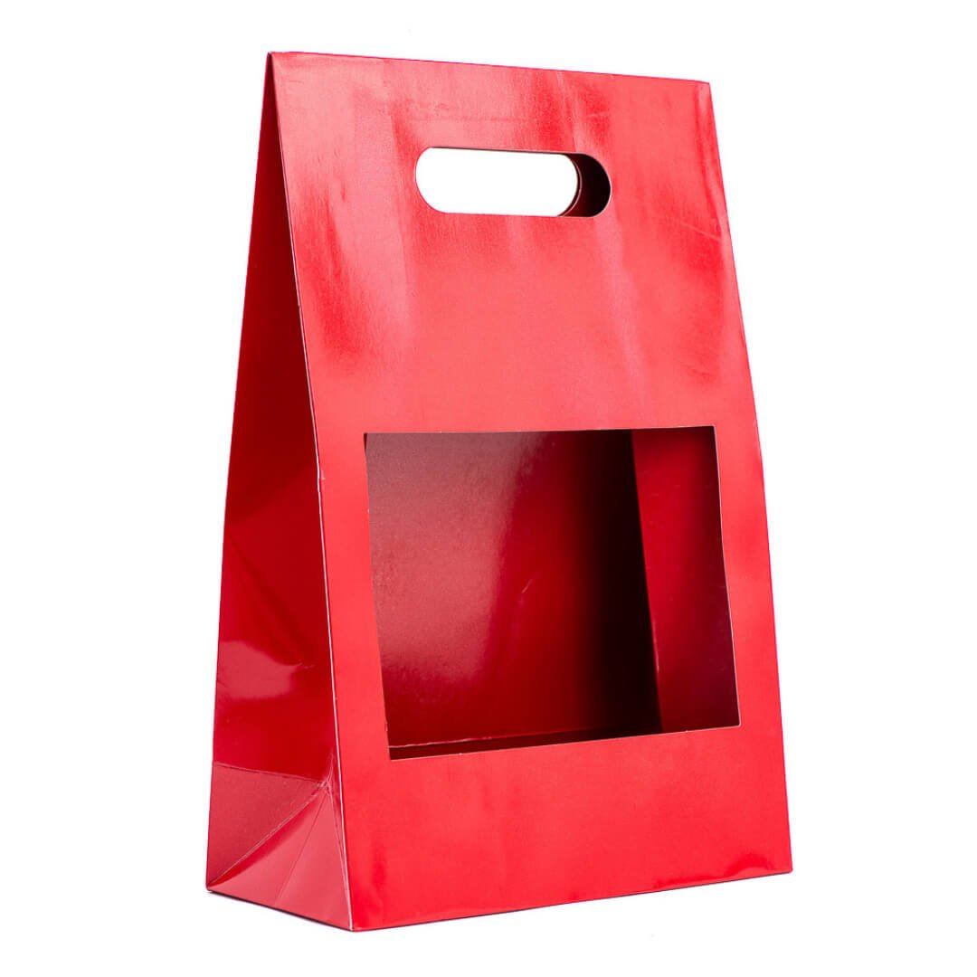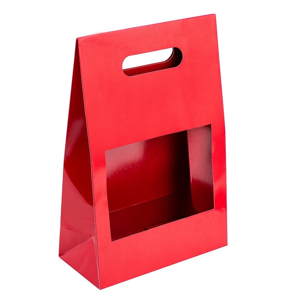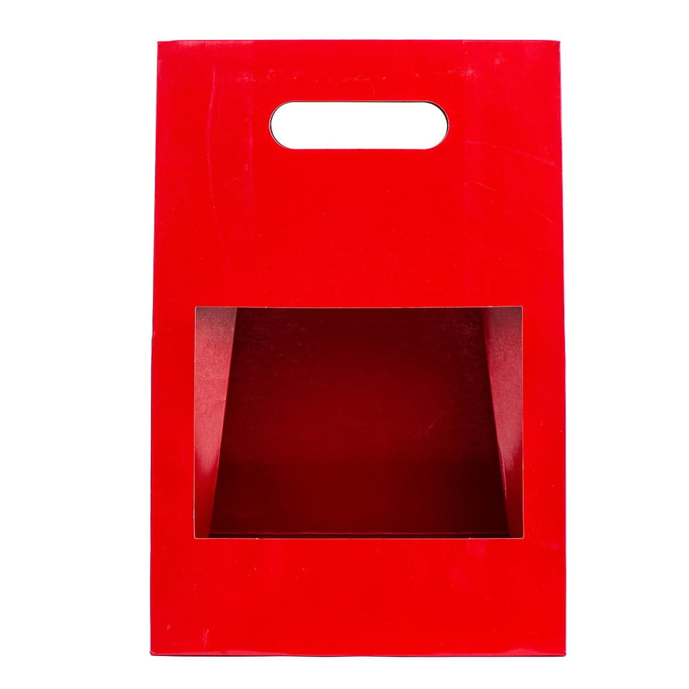 Cutii cu fereastră și mâner - roșu, dimensiune 37,5x25x12cm, soluția perfectă pentru ambalarea și prezentarea elegantă a produselor tale.