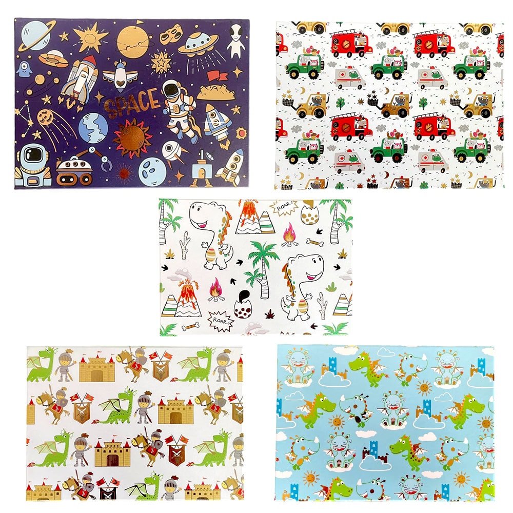 • Cutiile sunt decorate cu modele haioase, cu mașini de pompieri, dinozauri, rachete și alte elemente care vor captiva imaginația celor mici.