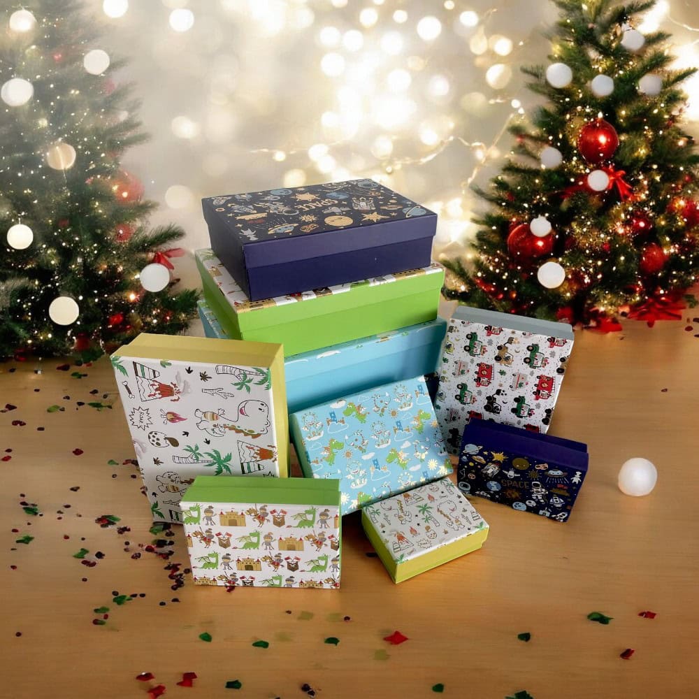Set 10 cutii dreptunghiulare diferite - model 2 copii, perfecte pentru a adăuga o notă de distracție și organizare în camera copilului tău. Cu designuri vesele și colorate, inspirate din lumea copiilor, aceste cutii sunt ideale pentru depozitarea jucăriilor, a hainelor mici sau a altor obiecte.