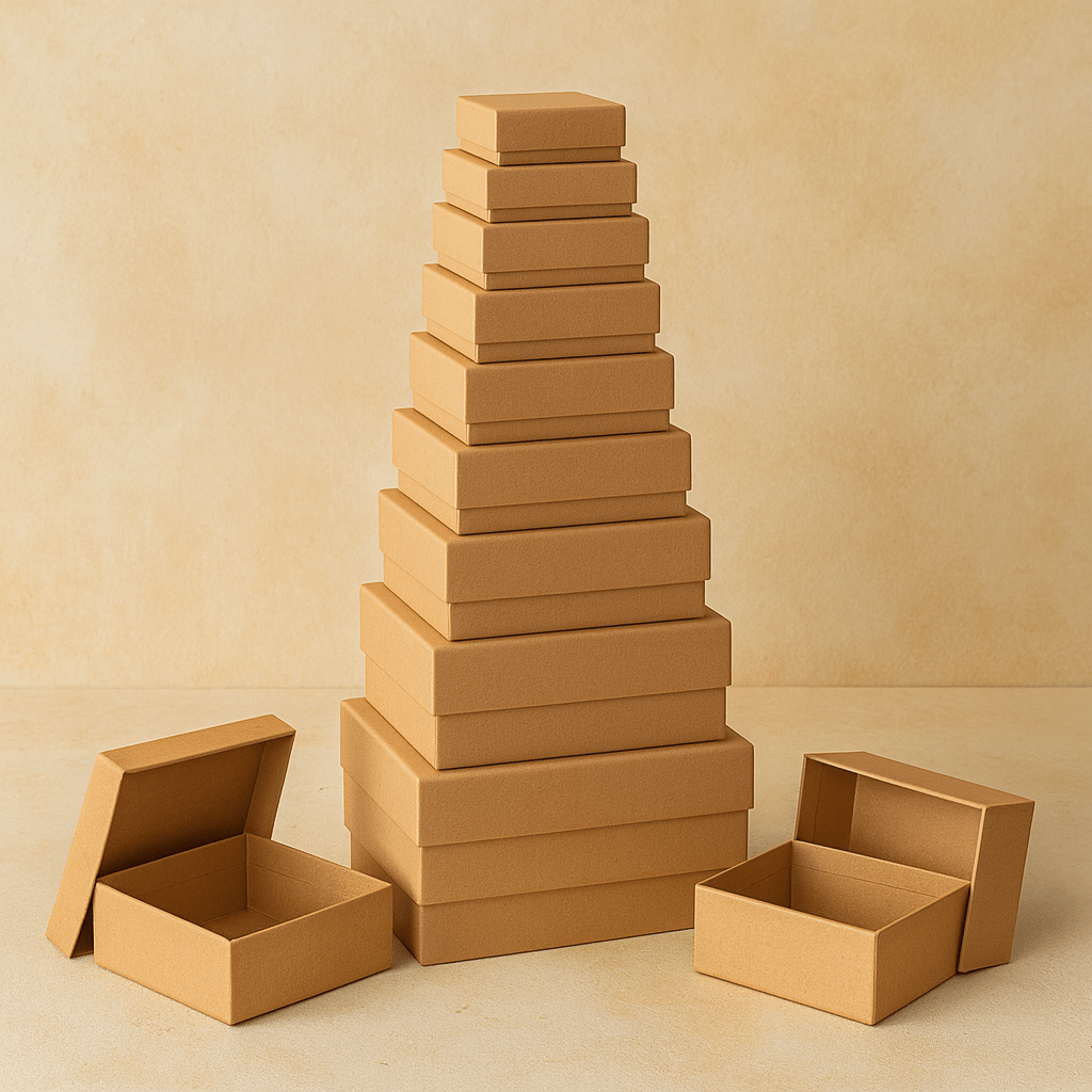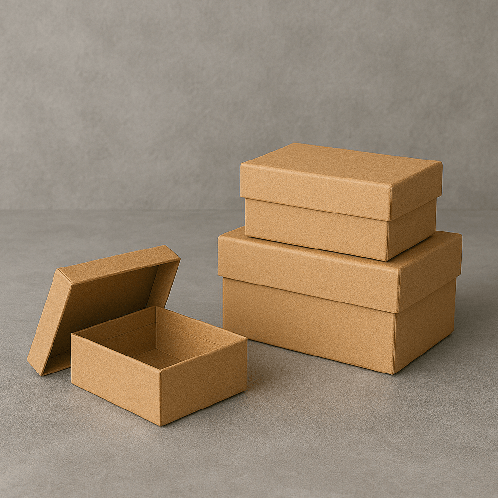 • Suprafața kraft (maro), conferă cutiilor un aspect sofisticat și minimalist.