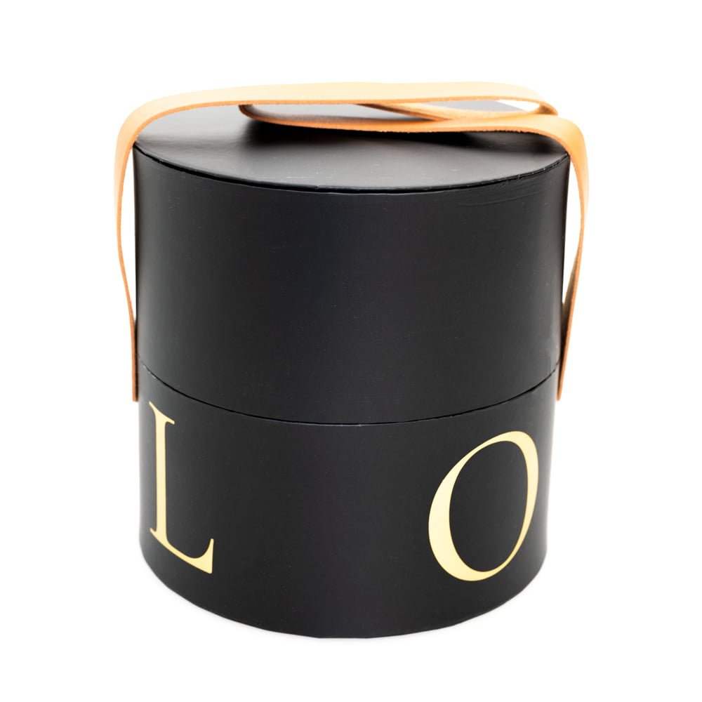 Set 2 cutii cilindrice cu mâner model Love - negru