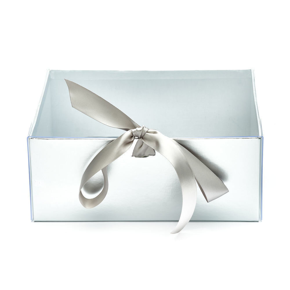 Set 2 cutii dreptunghiulare cu fereastră transparentă și panglică - argintiu