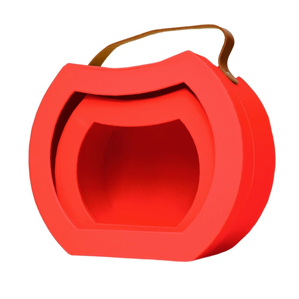 Set 2 cutii rotunjite cu mâner maro și fereastră - roșu
