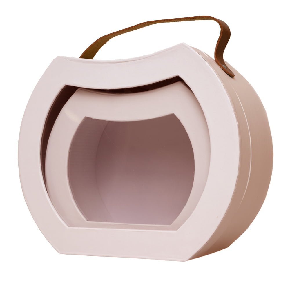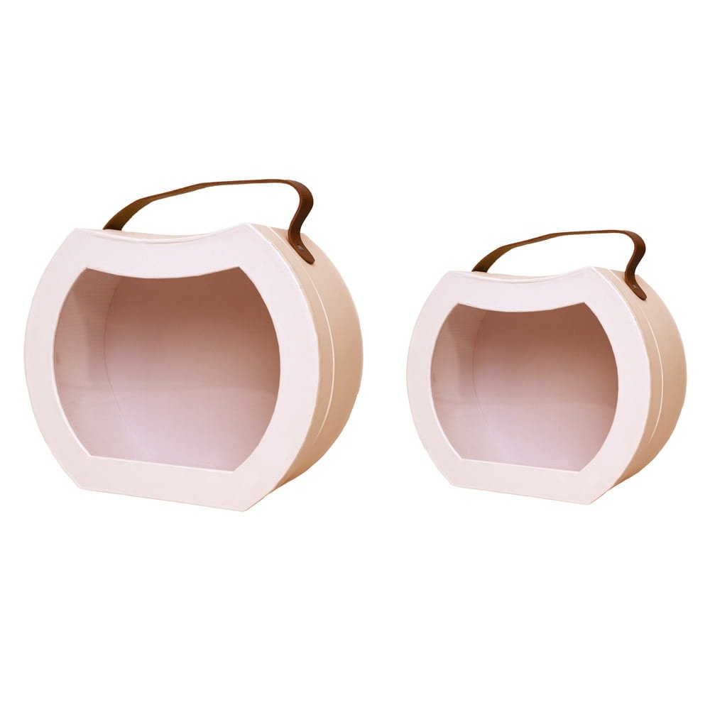 Set 2 cutii rotunjite cu mâner maro și fereastră - roz