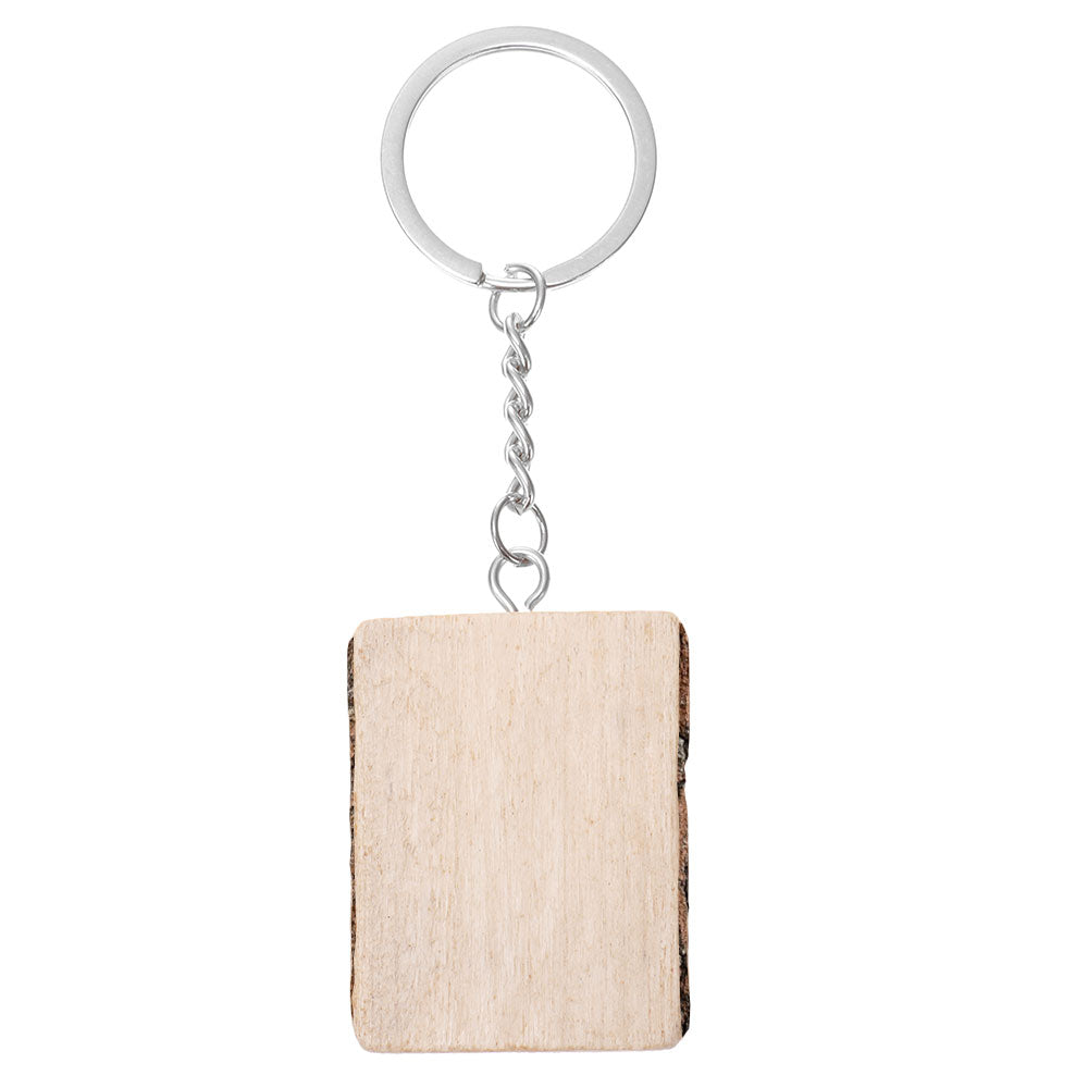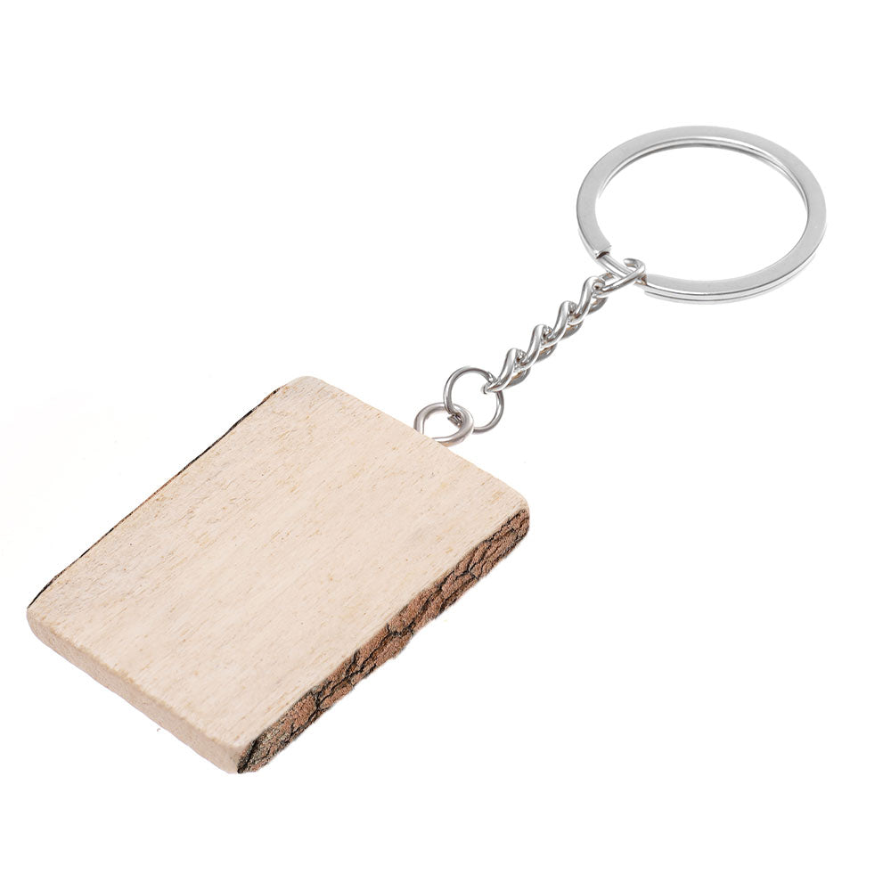 - Breloc din lemn natural de pin cu inel metalic
