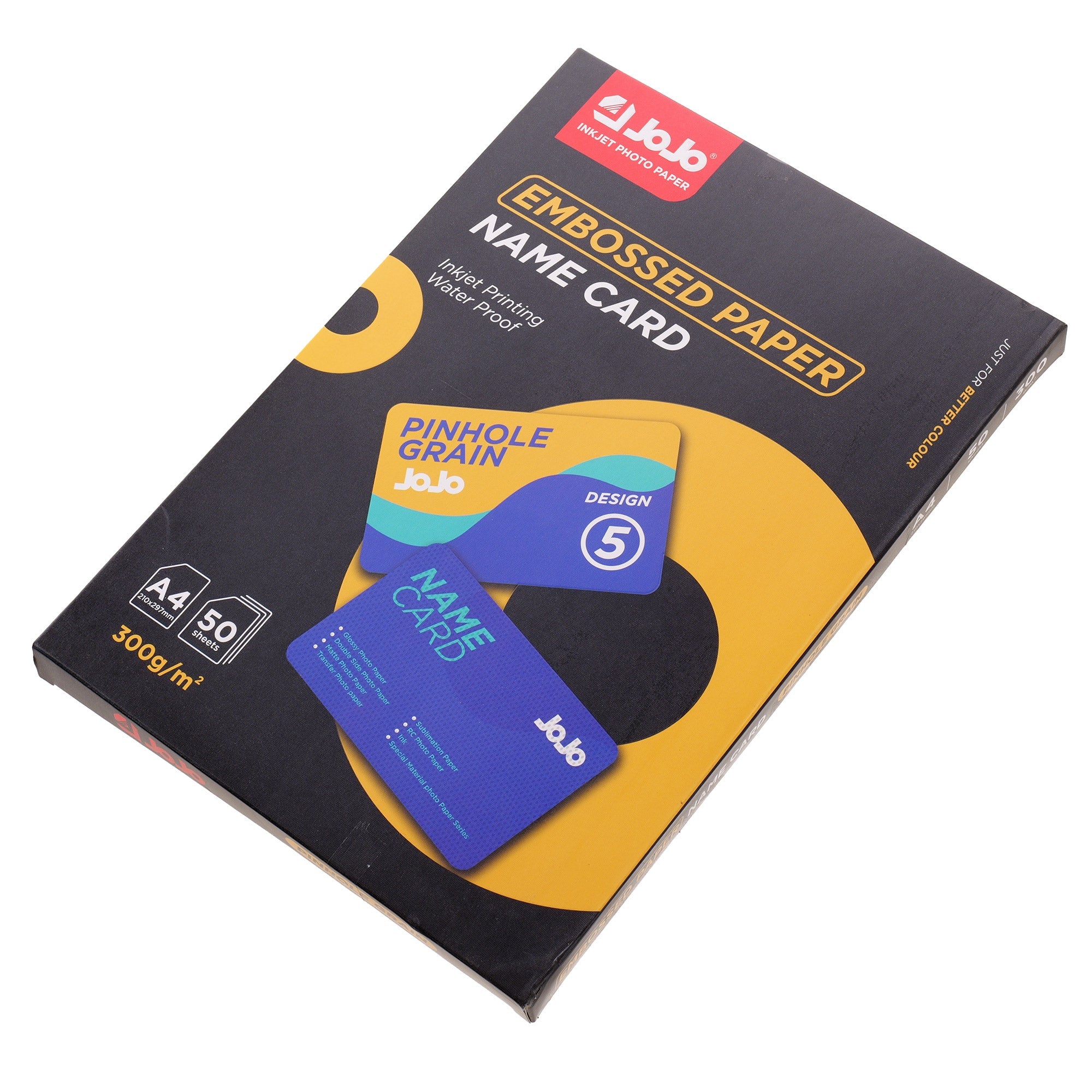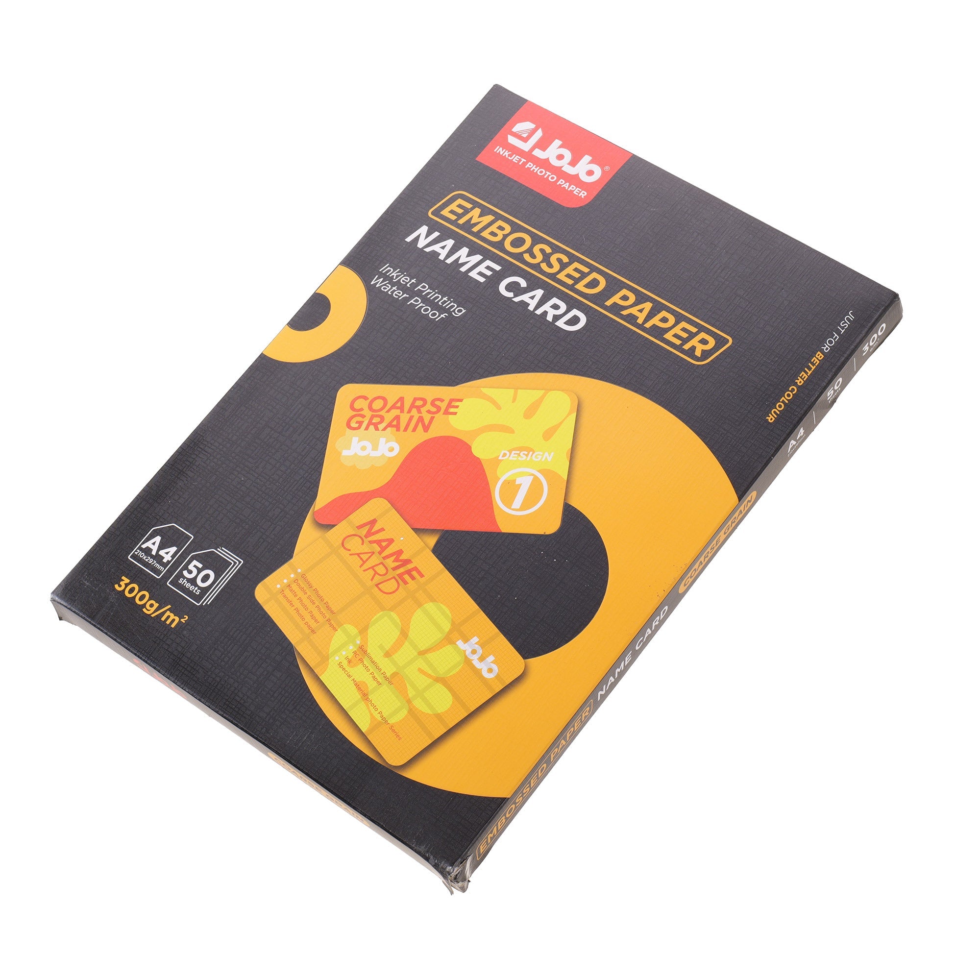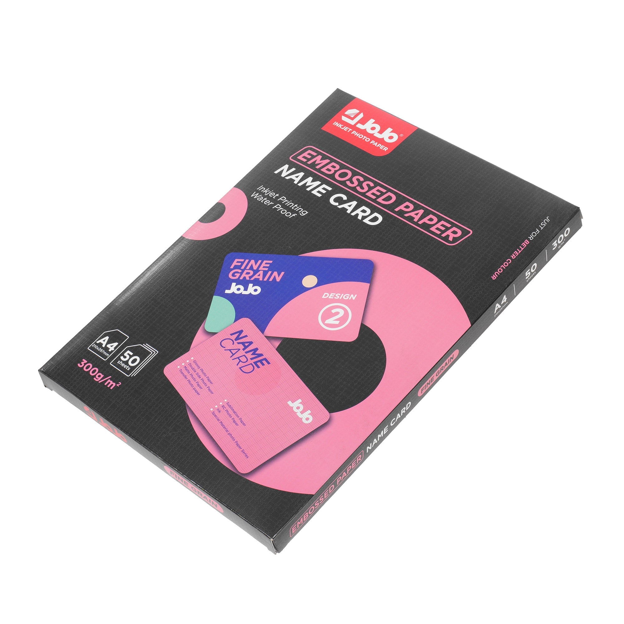 Hârtie embosată JoJo cu textură ultra premium, special concepută pentru imprimantele inkjet de acasa. Suprafața are o texturație fină, care oferă un aspect premium, reduce reflexiile și îmbunătățește calitatea imprimării.