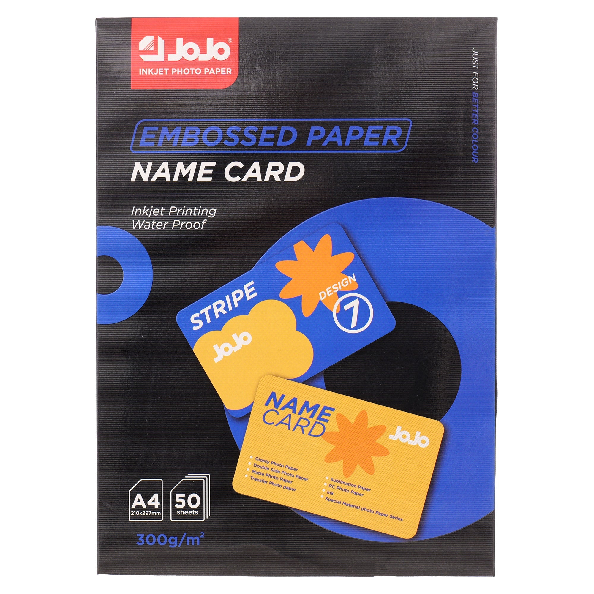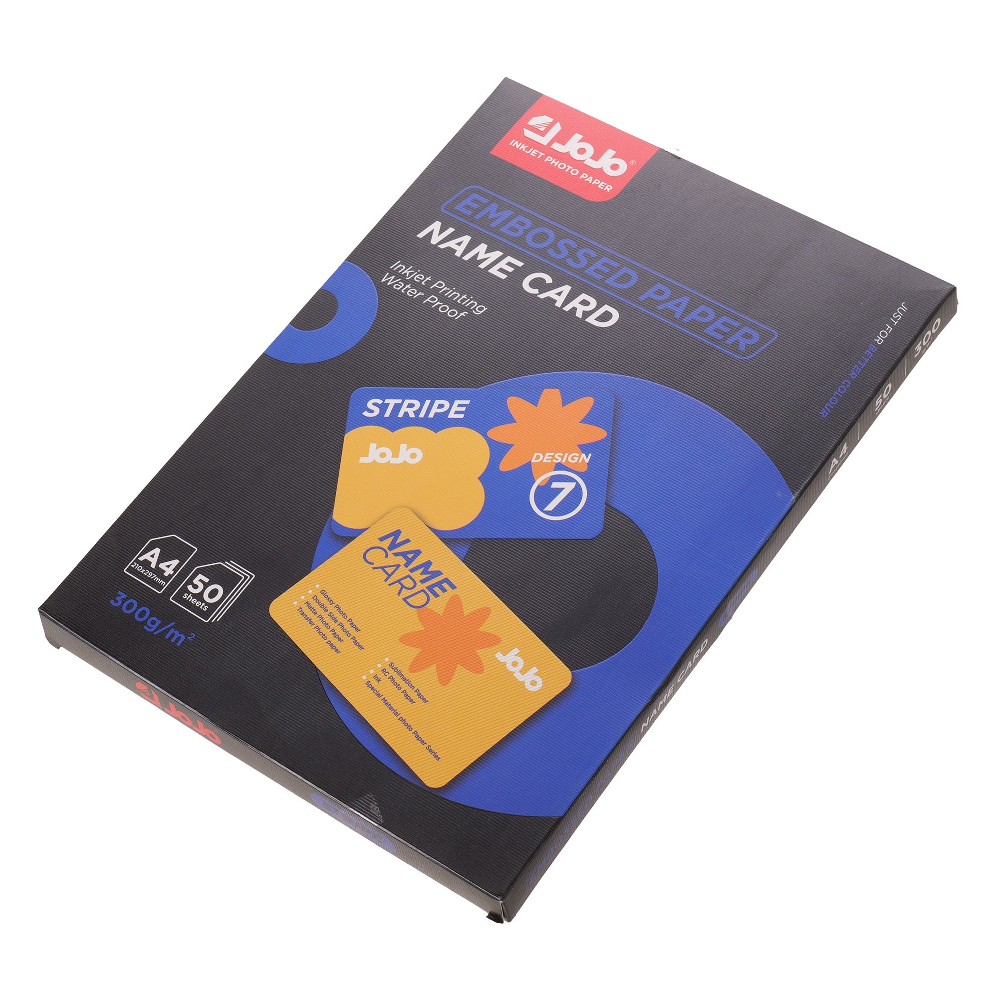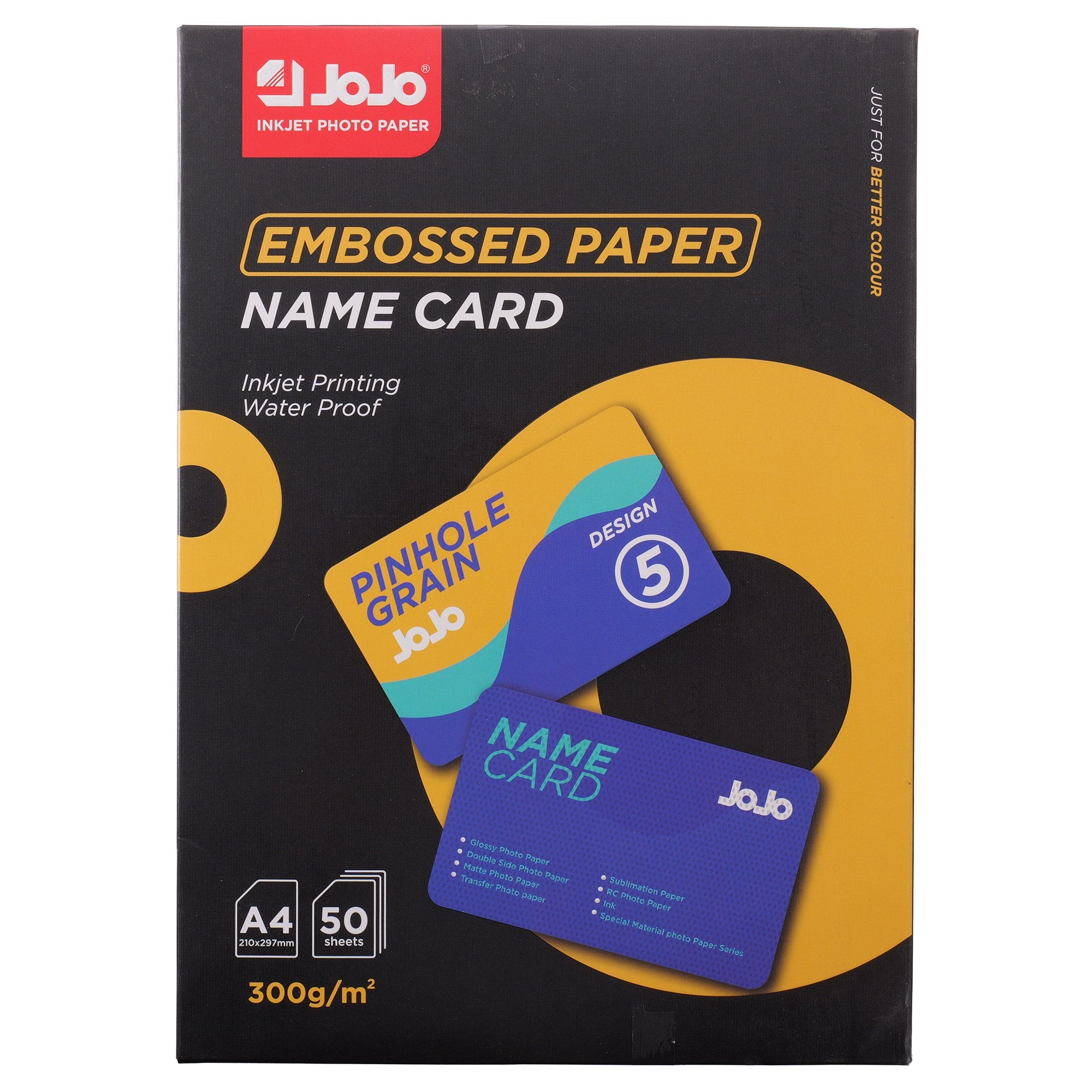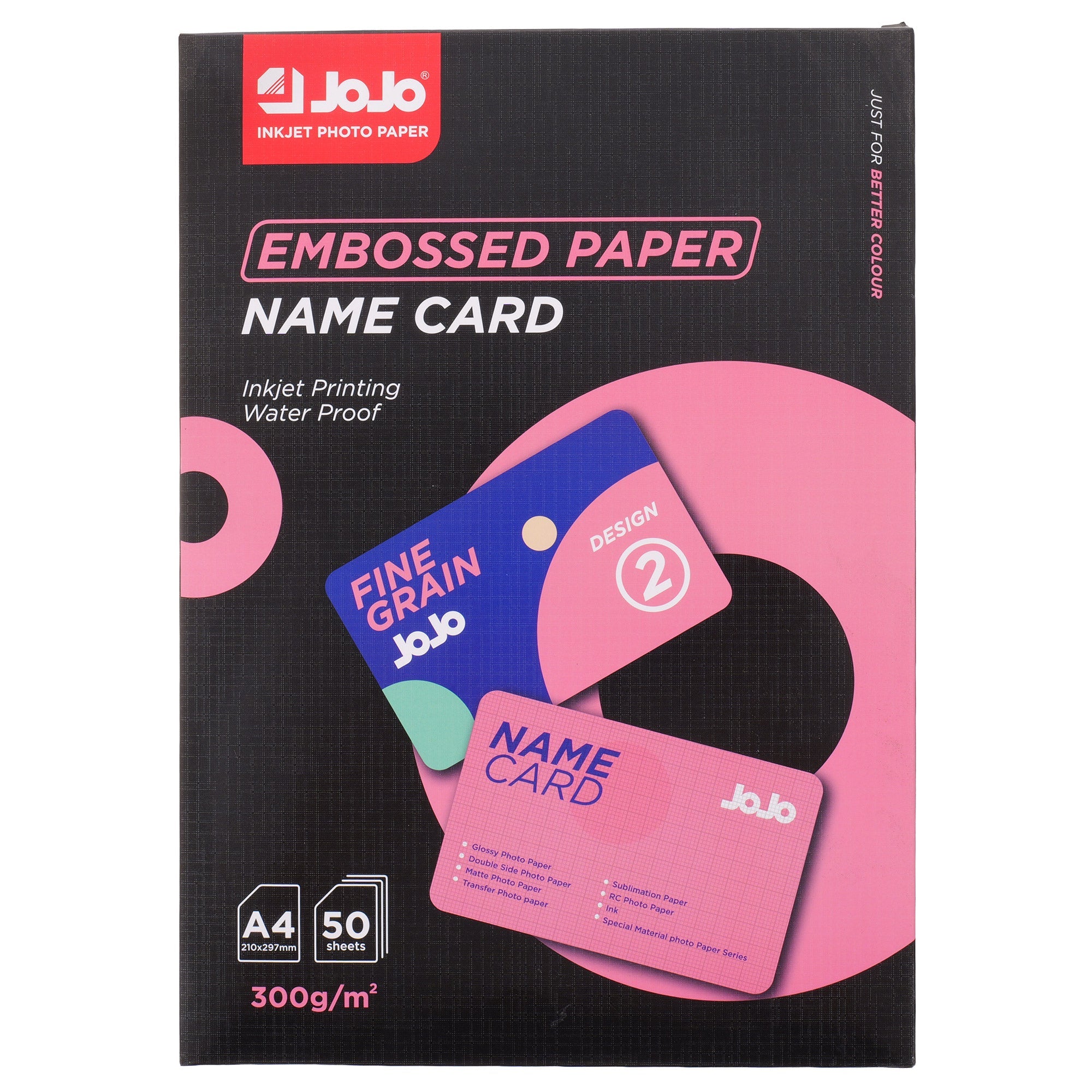 Hârtie embosată JoJo cu textură ultra premium, special concepută pentru imprimantele inkjet de acasa. Suprafața are o texturație fină, care oferă un aspect premium, reduce reflexiile și îmbunătățește calitatea imprimării.