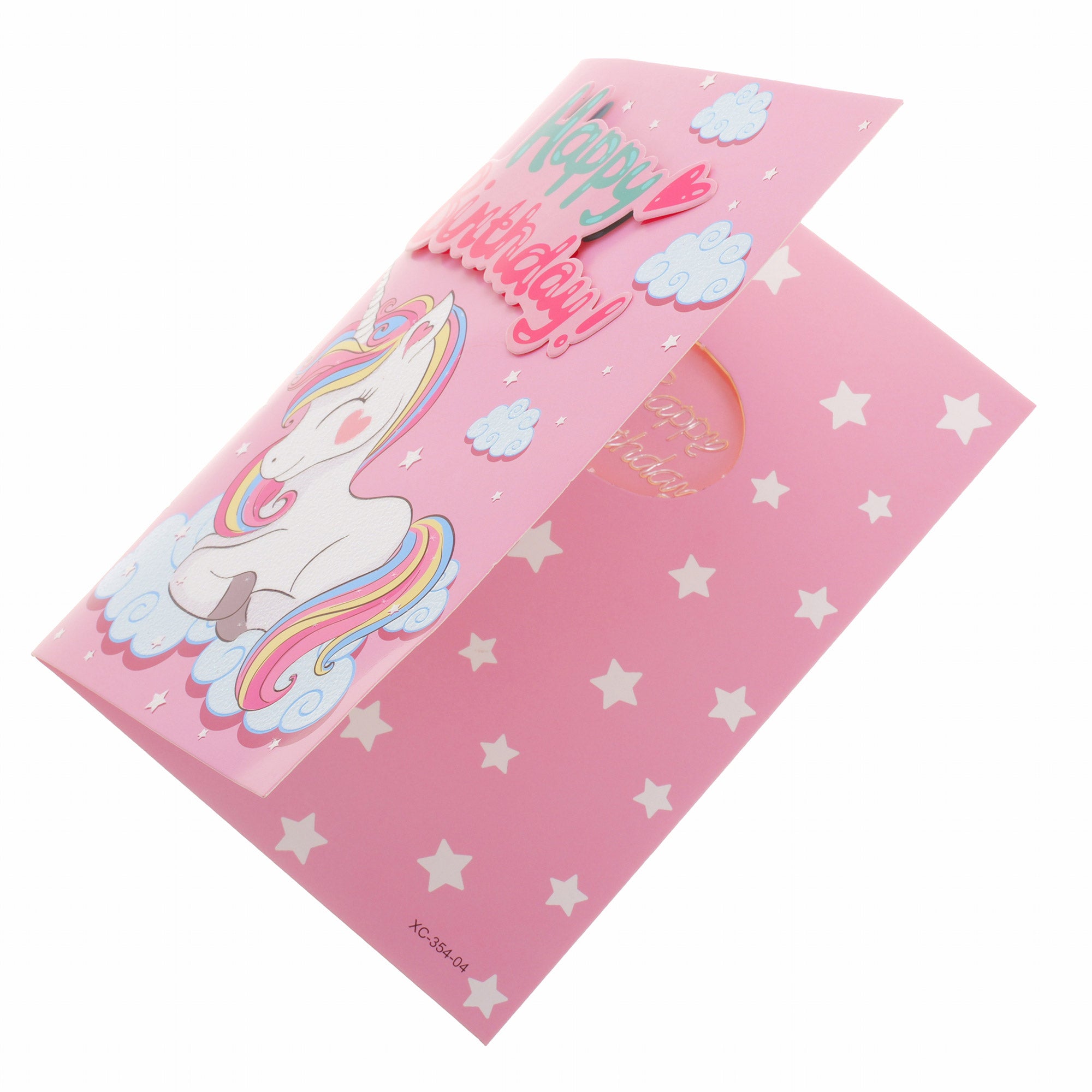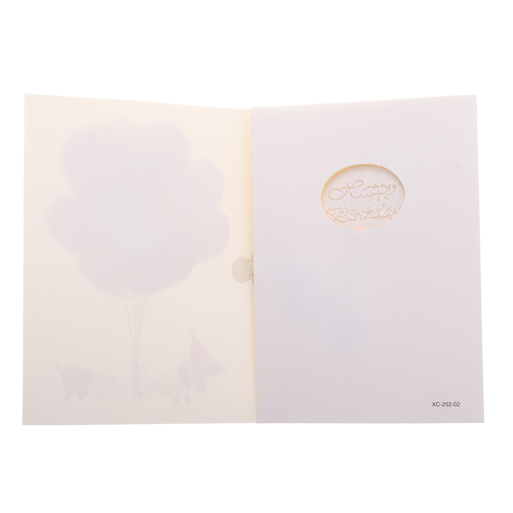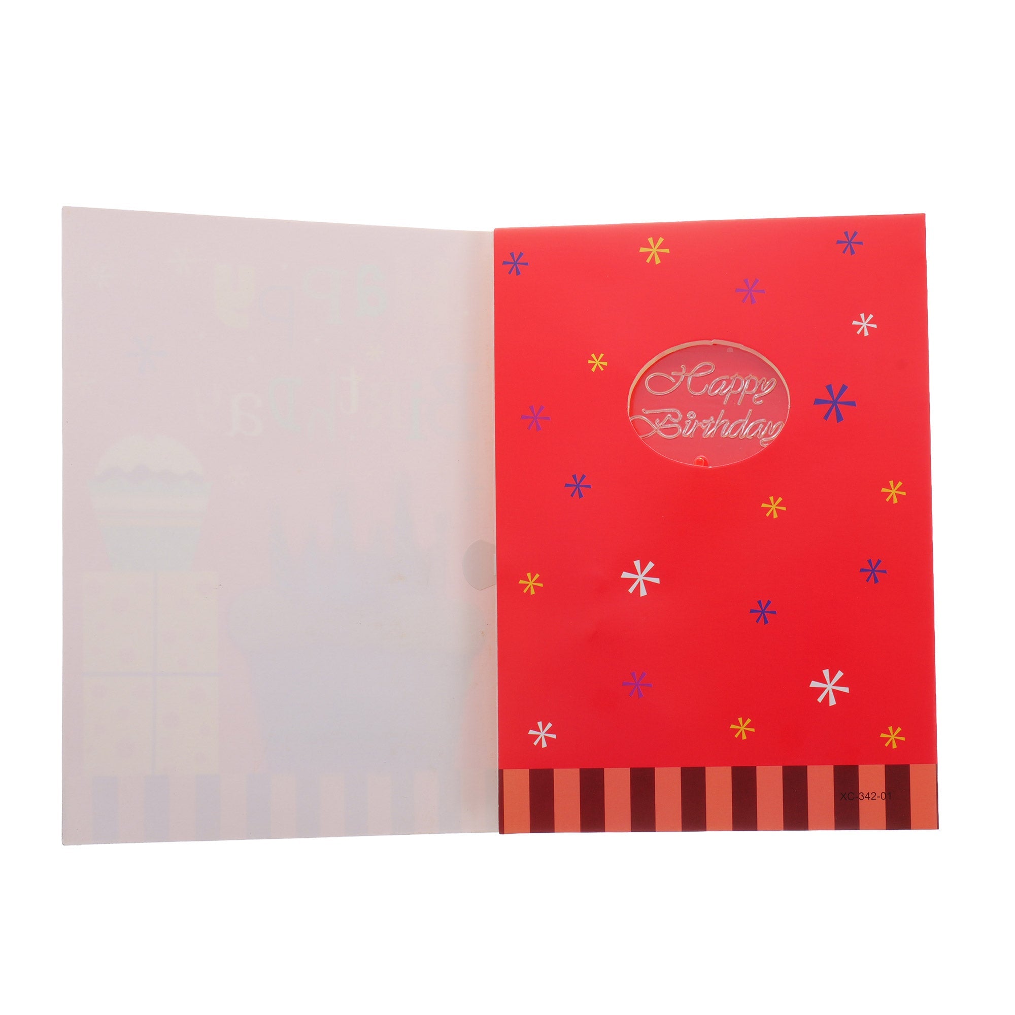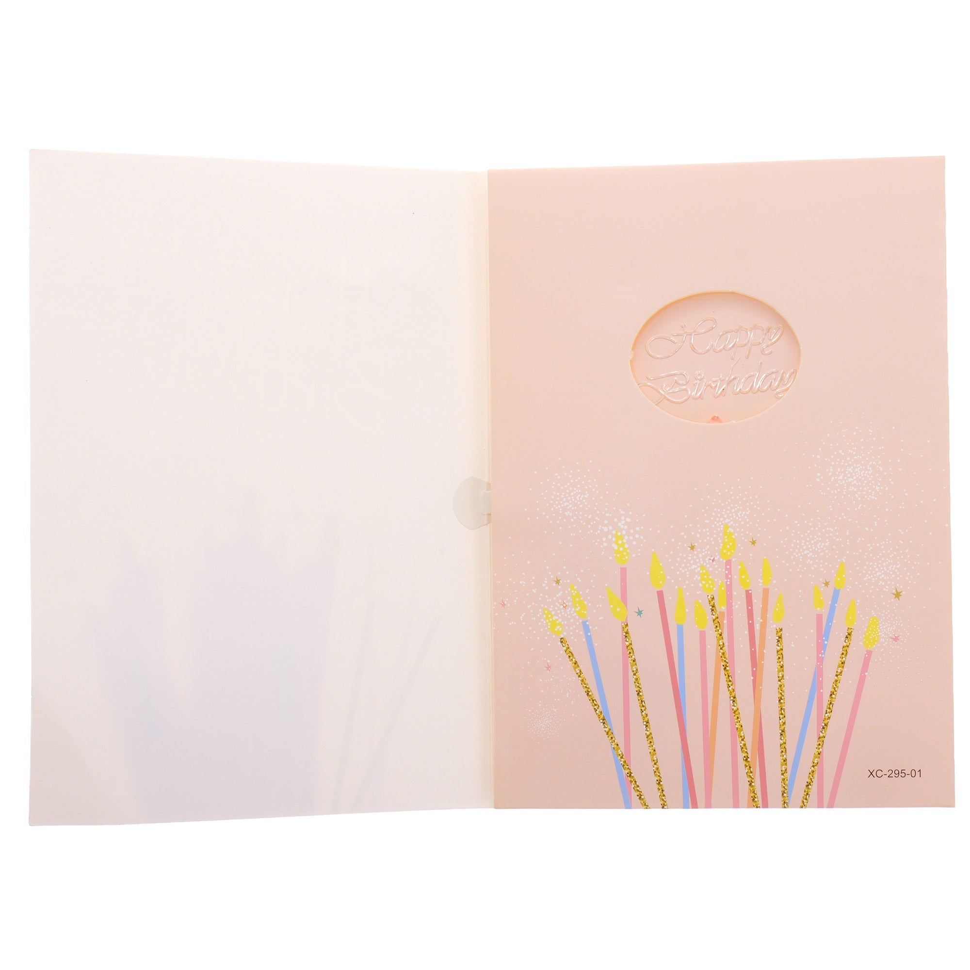 La deschiderea felicitării, aceasta redă melodia clasică de La Multi Ani, iar un LED roșu se aprinde automat.