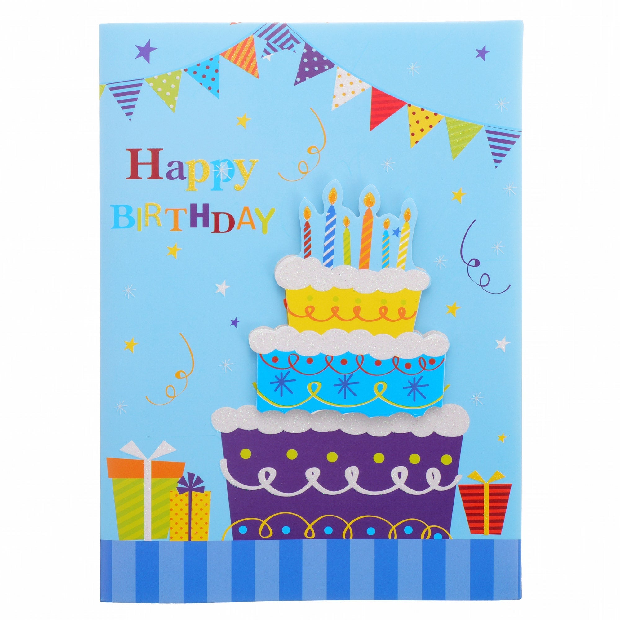 Felicitari vesele și colorate, realizate din hârtie cartonată premium, decorate cu un torturi aniversare cu lumânări, pahare de sampanie și bannere colorate – perfectă pentru a aduce un zâmbet de ziua cuiva drag.