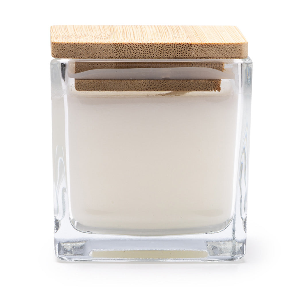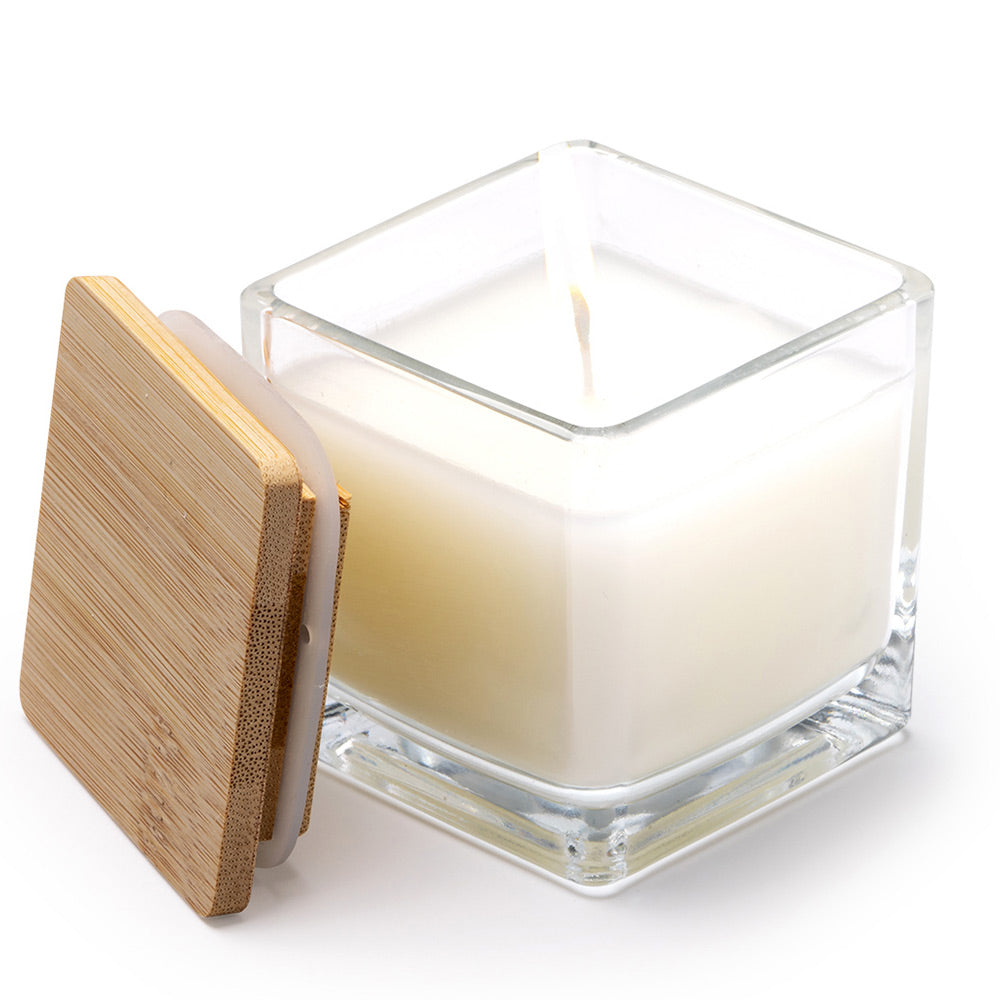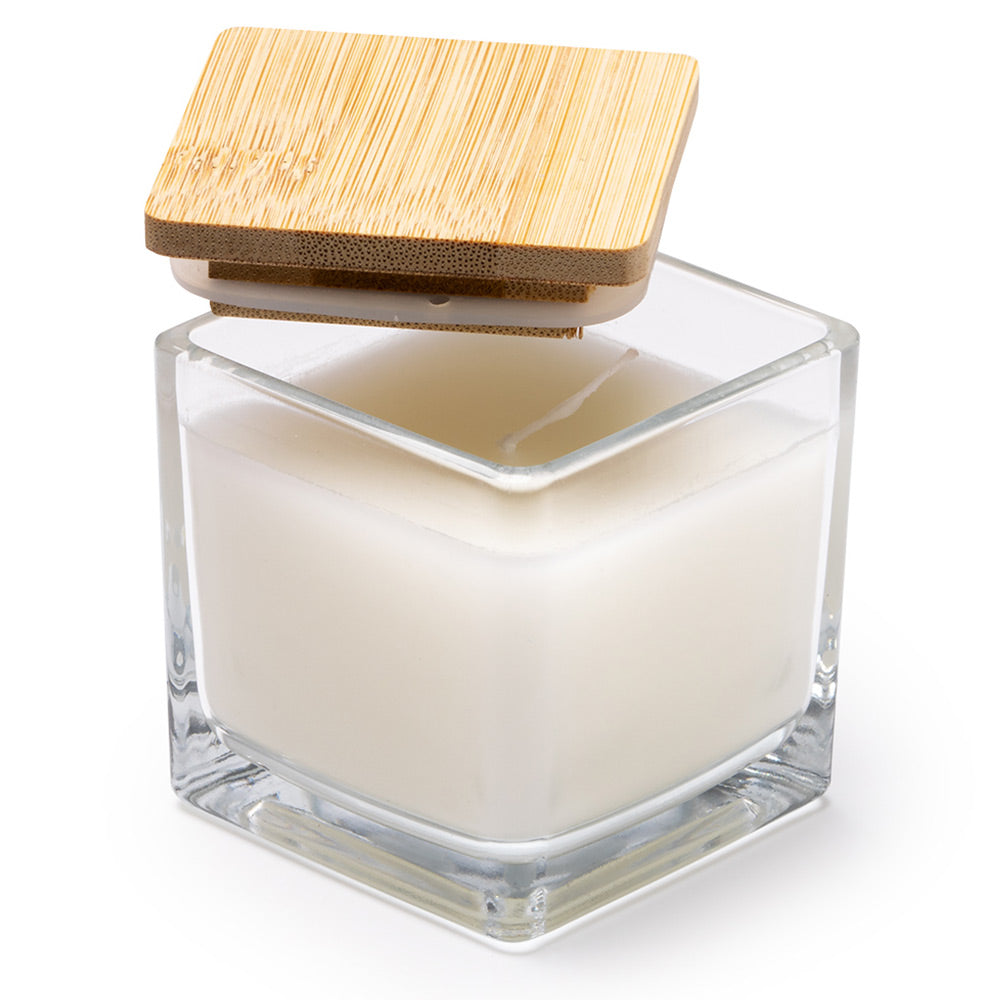 • Lumanare parfumata in recipient patrat din sticla transparenta