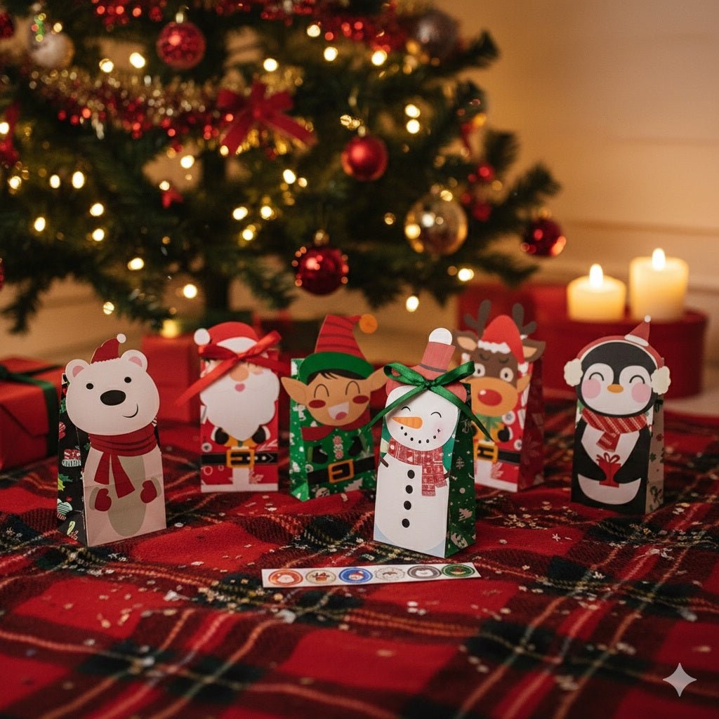 - Set cu 6 modele diverse: Oferă varietate și bucurie, permițându-vă să asortați fiecare cadou cu personajul preferat al copilului: Moș Crăciun, ren, spiriduș, om de zăpadă, pinguin sau urs polar.