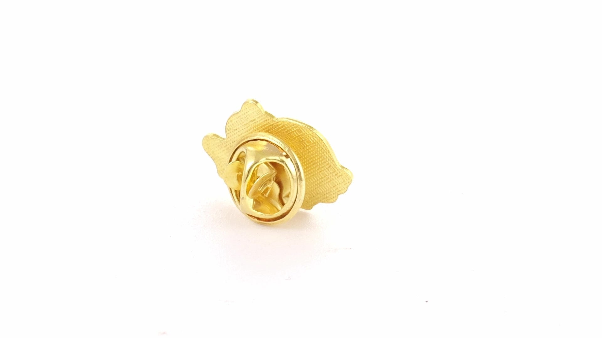 • Se prinde pe haina pe geanta sau pe orice accesoriu textil printr-un pin metalic