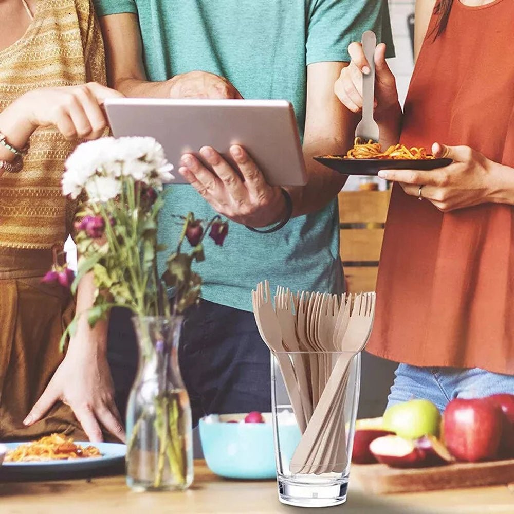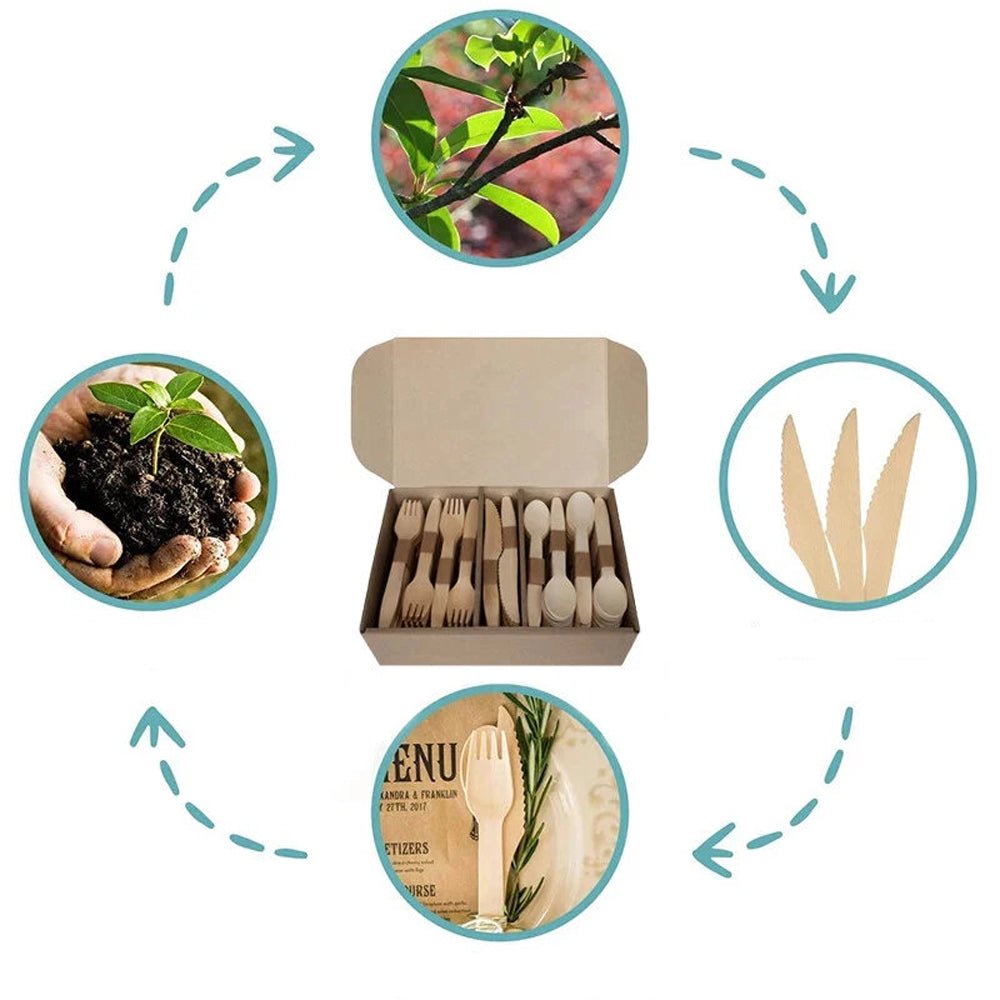Este o alegere practică și estetică pentru evenimente, picnicuri sau ambalaje sustenabile. Conține 240 de piese: 60 de cuțite, 90 de furculițe și 90 de linguri, toate din lemn netratat, potrivite pentru contact alimentar.