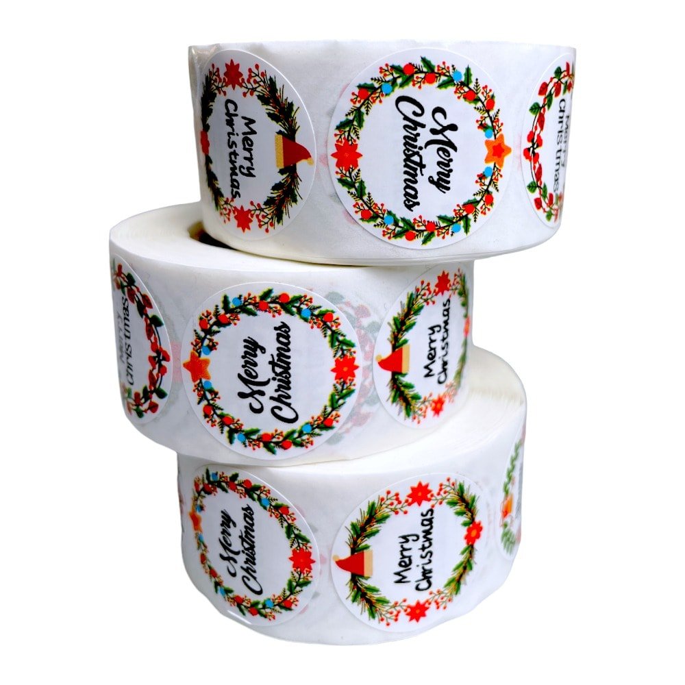 Rolă 500 stickere Crăciun 2.5cm - model 3 adaugă un element special oricărui proiect festiv.