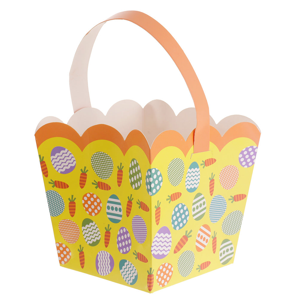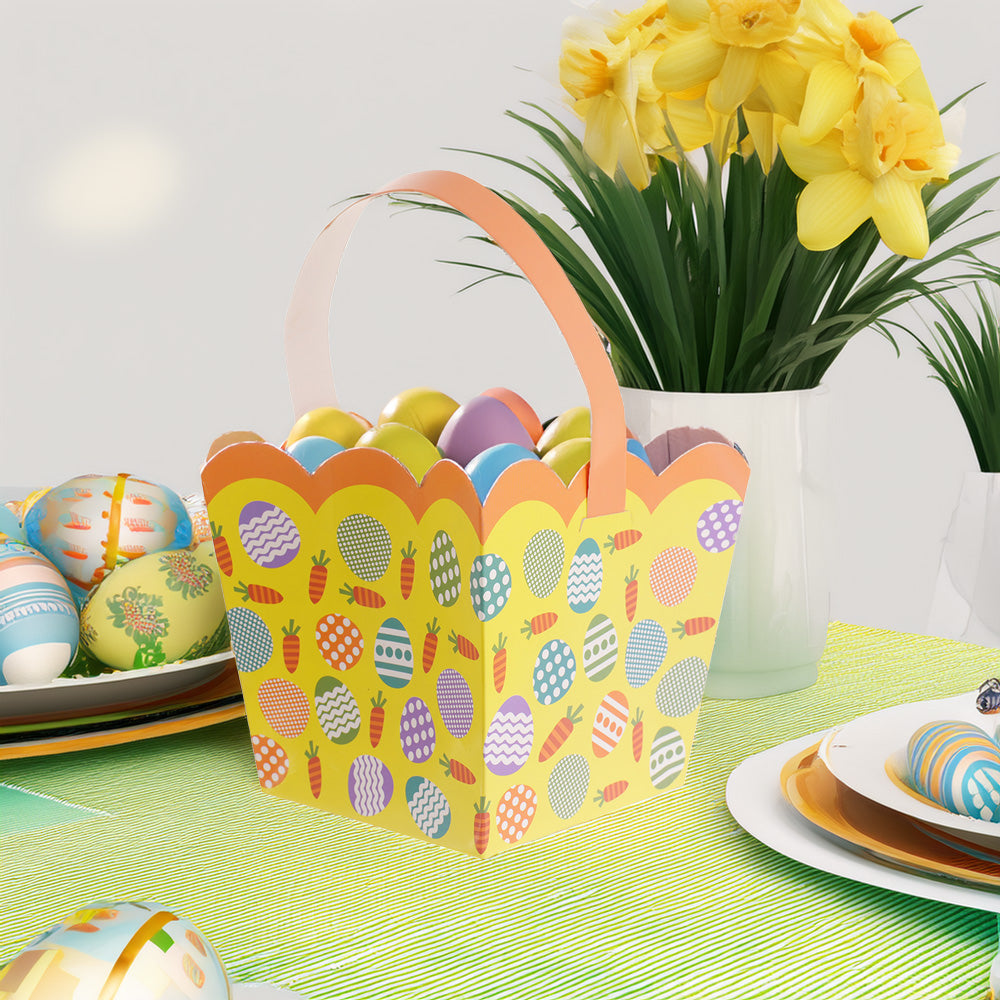• Model tematic de Paste: decorata cu oua colorate in culori pastelate si morcovi