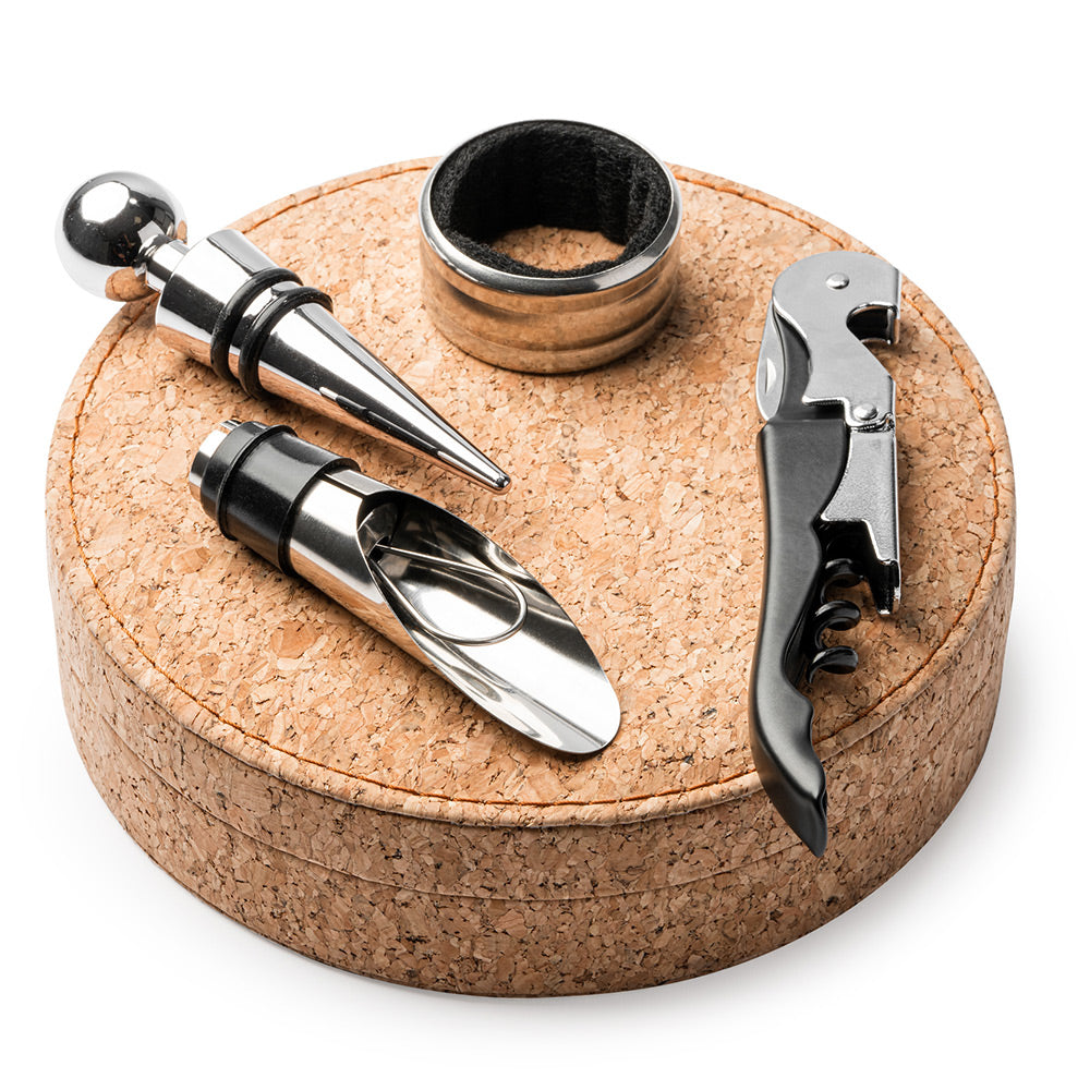 Set 4 accesorii vin in cutie de pluta
