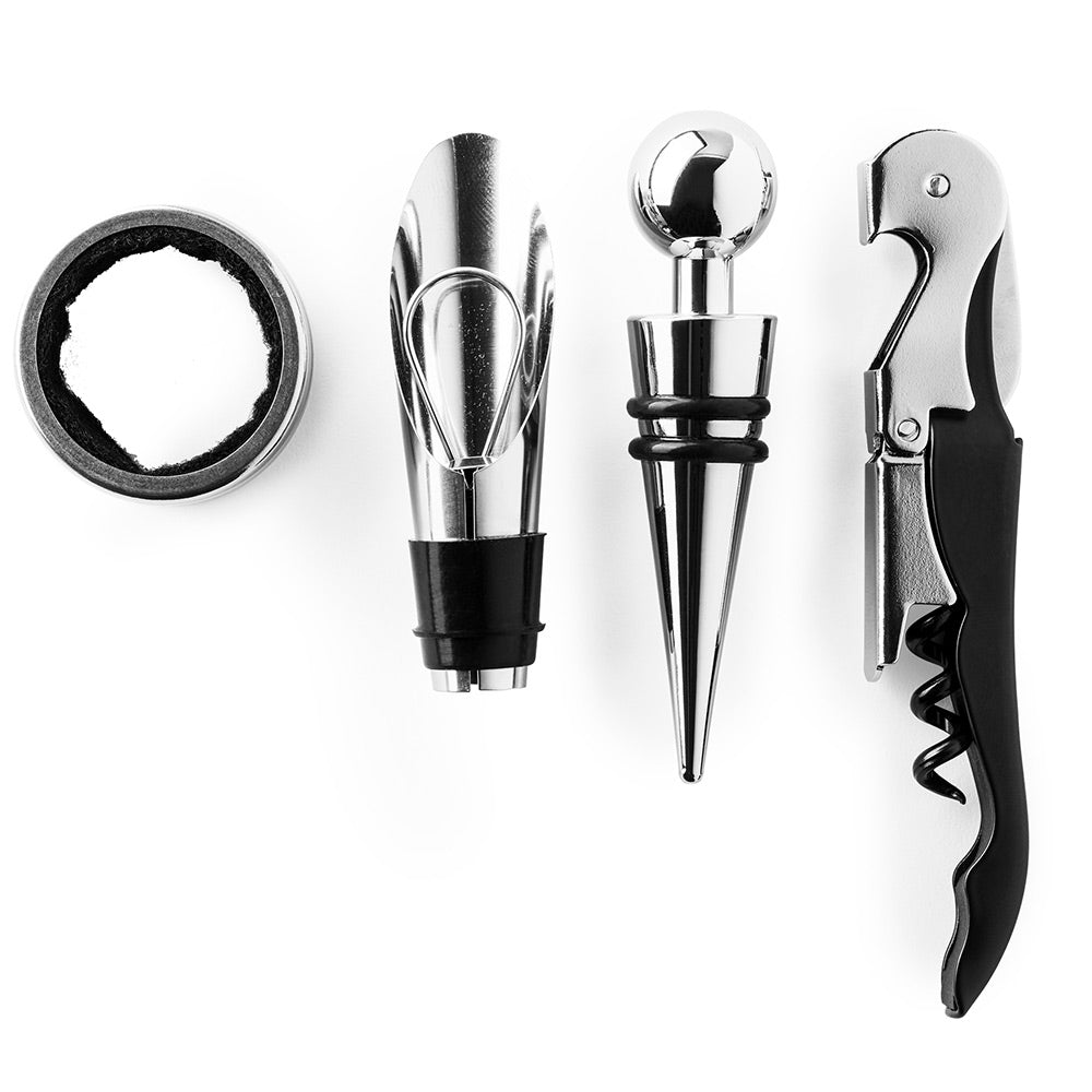 • Setul contine un tirbuson profesional, inel, picurator si capac