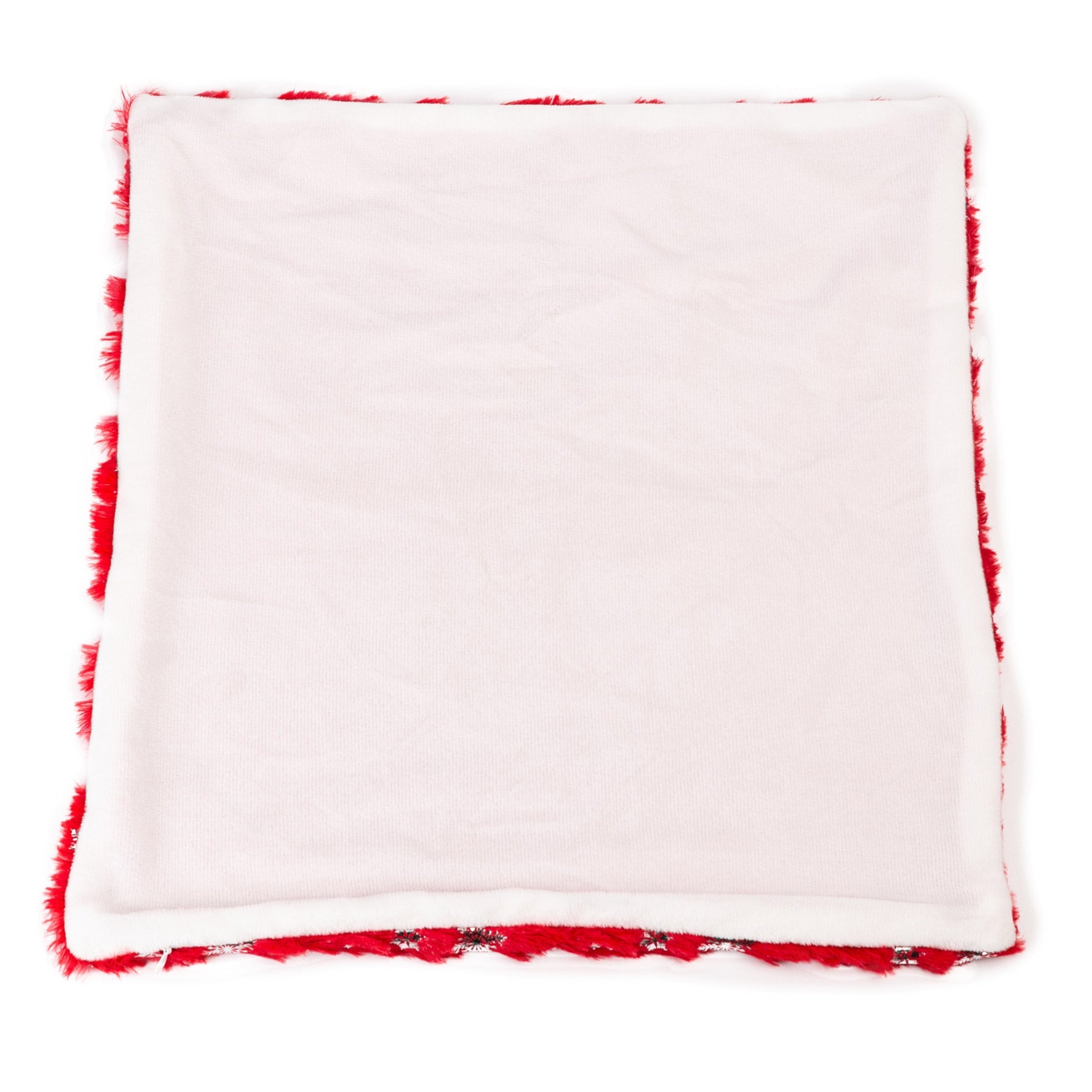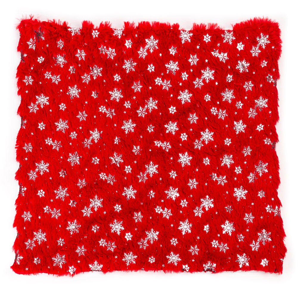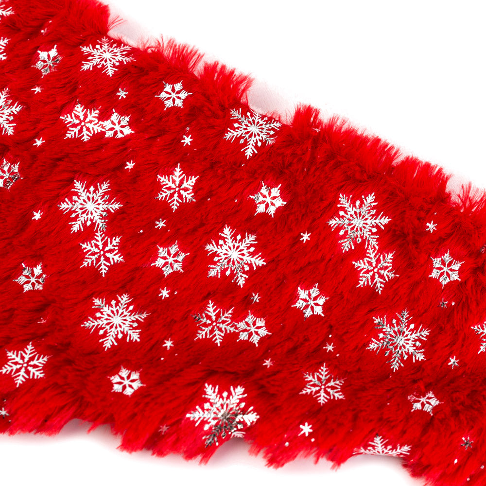 • Model de Craciun din material pufos rosu cu imprimeu fulgi de zapada