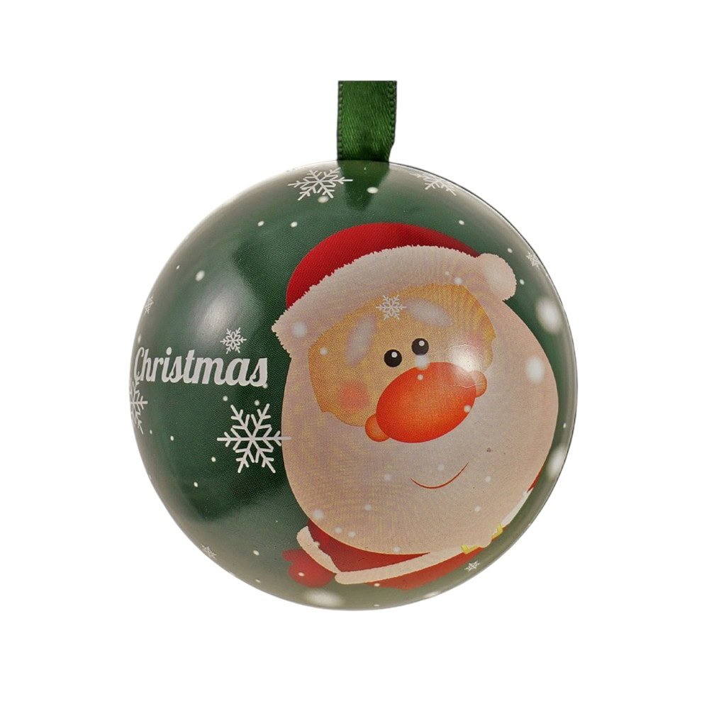 Glob de brad metalic verde cu model Mos Craciun Ø7 cm