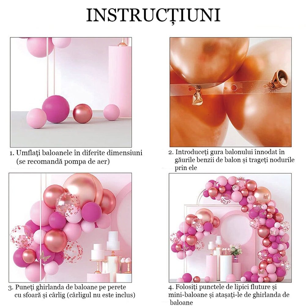 • Baloane de înaltă calitate: Fabricate din materiale durabile, baloanele sunt rezistente și își păstrează forma pentru o lungă perioadă de timp