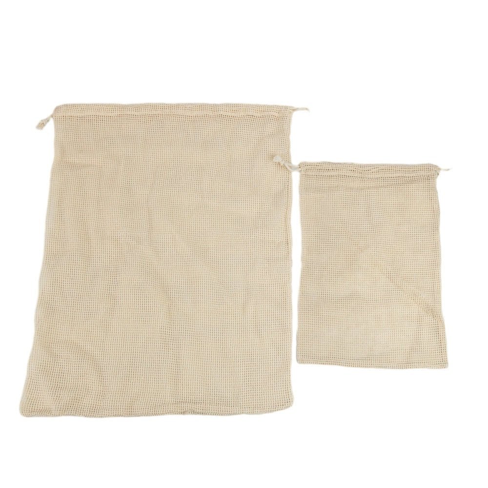 Plasă din bumbac cu închidere sfoară - bej 35x45cm (set 10 buc)